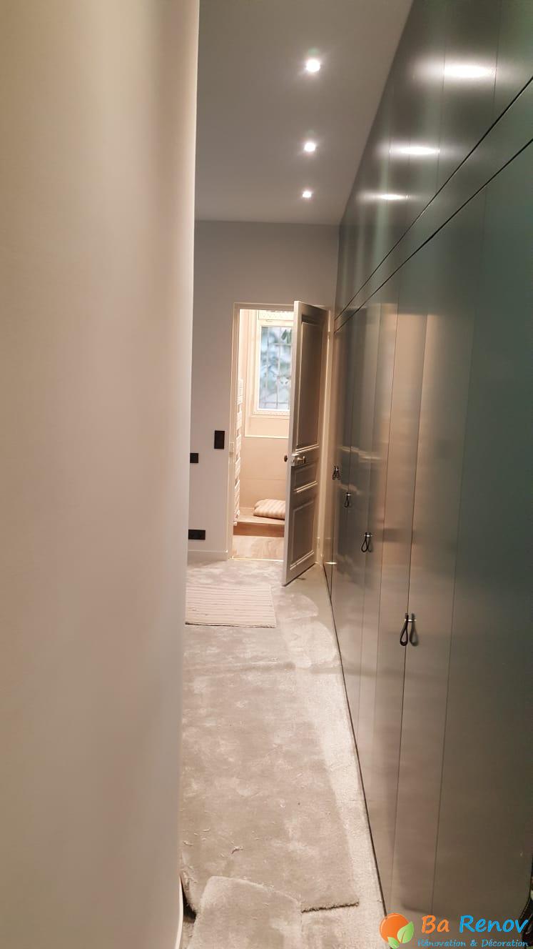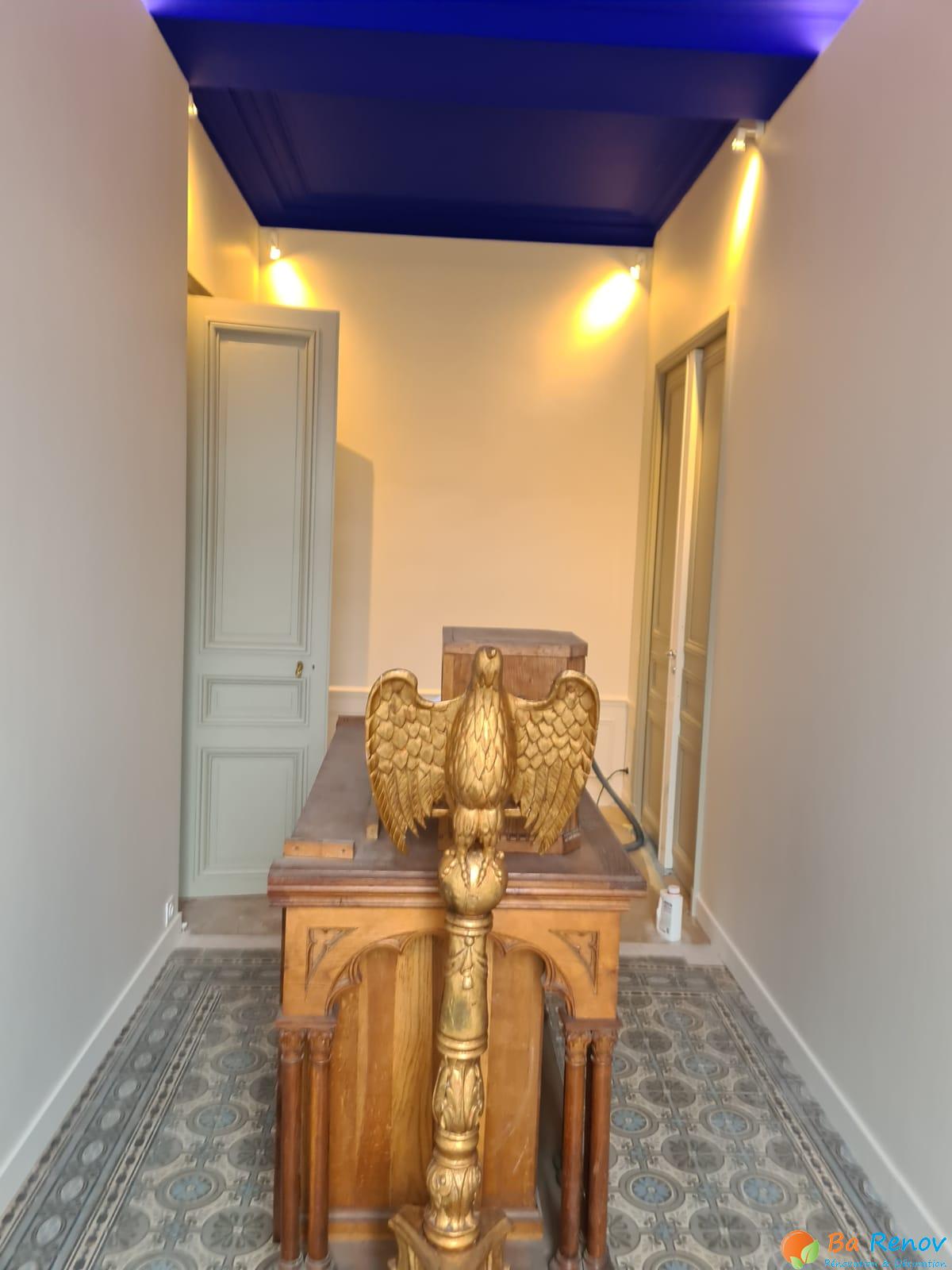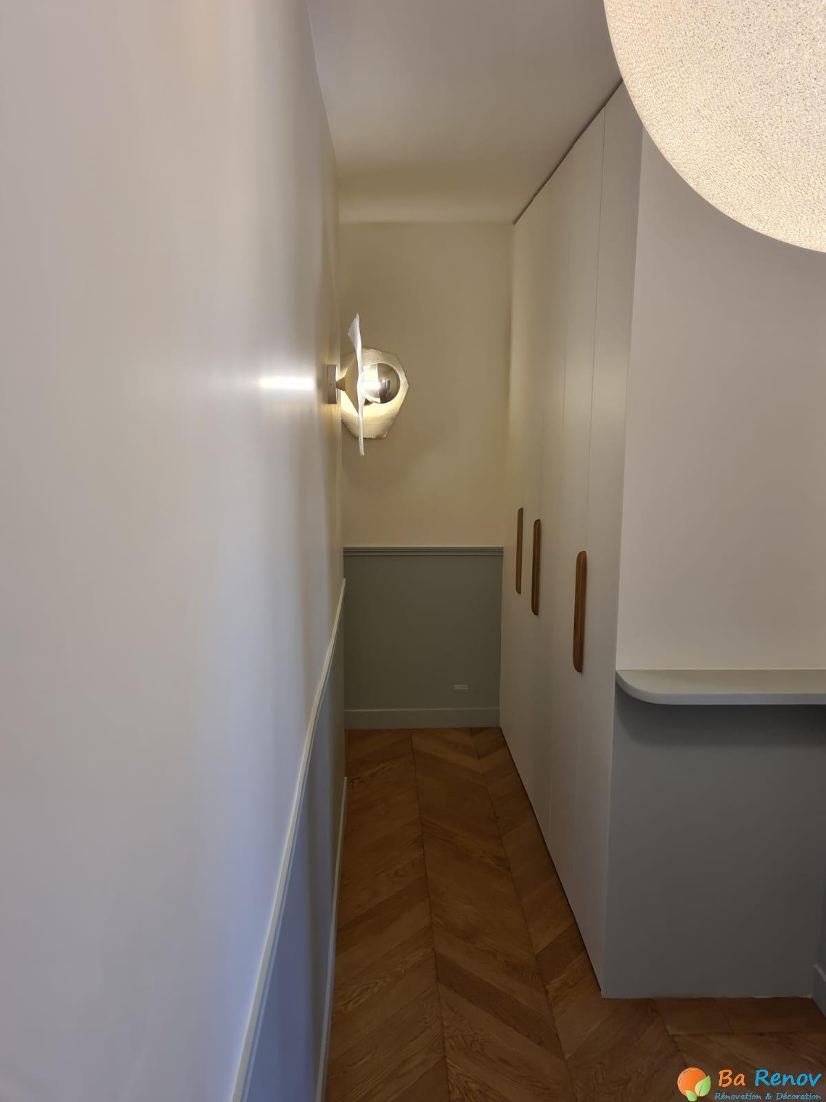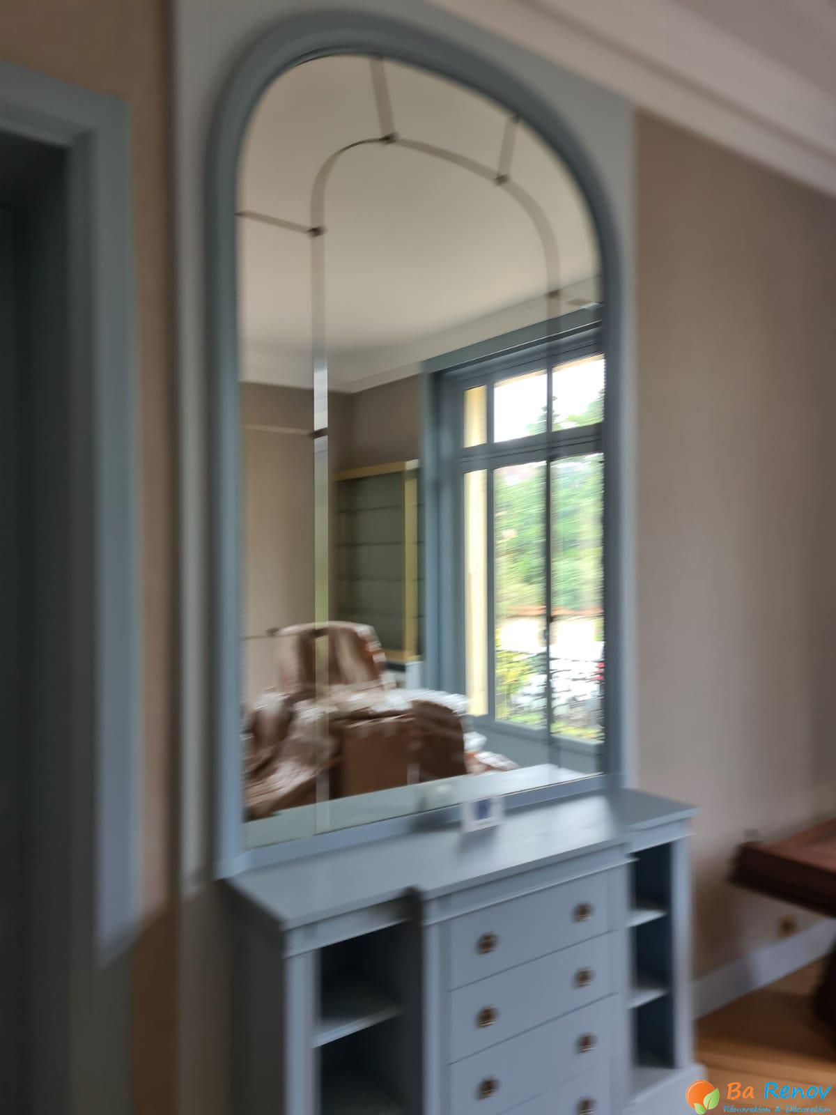 Un magnifique ensemble de menuiserie en surélévation vous donne une idée précise sur nos capacités de réalisations. La qualité de pose du carrelage et du parquet sont la marque de notre savoir faire. La finition et les peintures mettent en lumière le soin apporté par nos peintres. Vous constaterez que toute l’électricité est encastrée, ce qui donne toute sa dimension à une décoration appropriée.