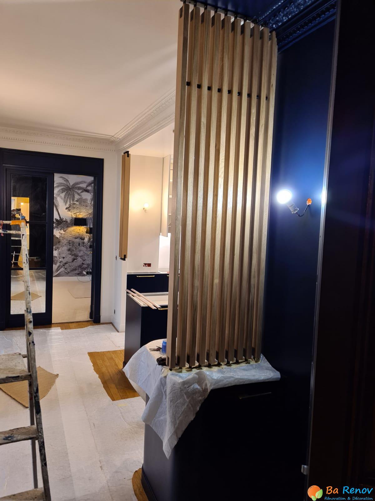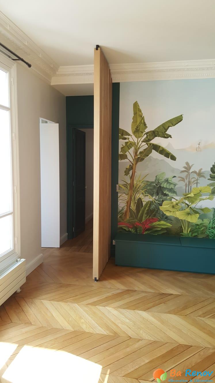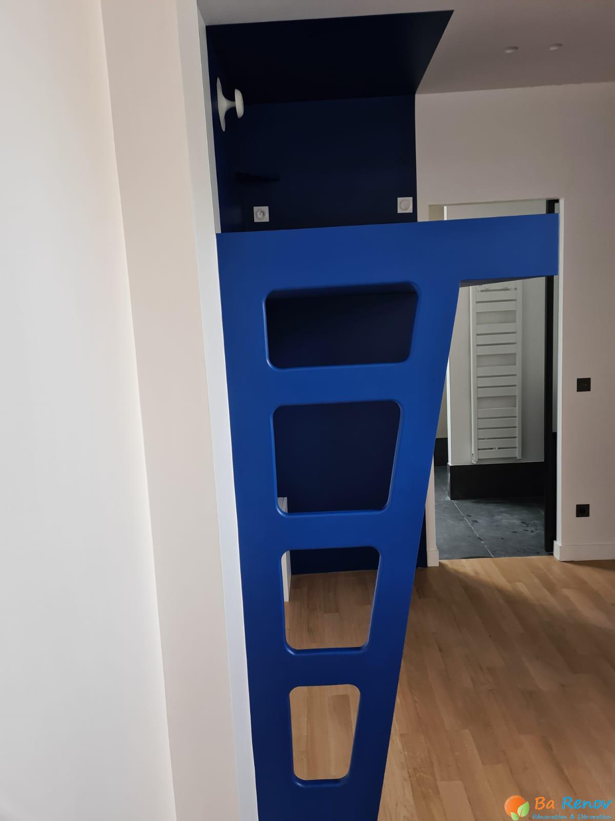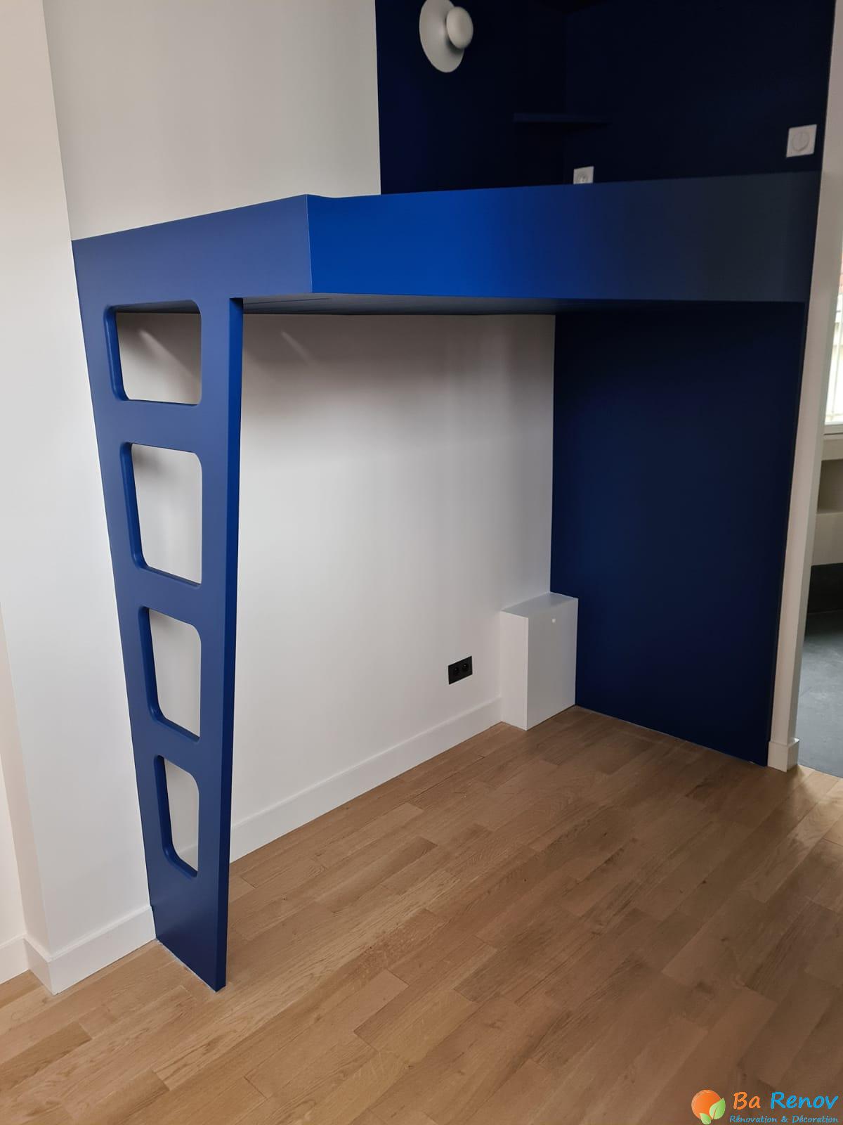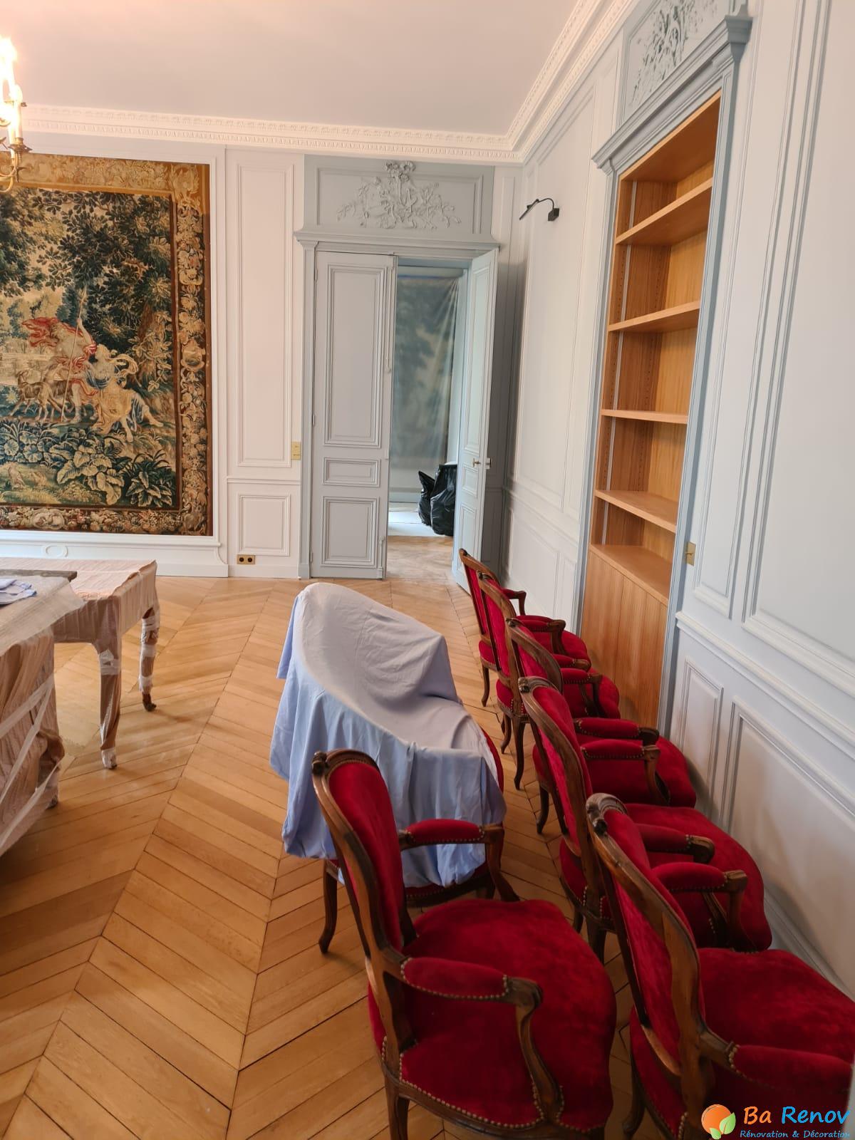 Un magnifique ensemble de menuiserie en surélévation vous donne une idée précise sur nos capacités de réalisations. La qualité de pose du carrelage et du parquet sont la marque de notre savoir faire. La finition et les peintures mettent en lumière le soin apporté par nos peintres. Vous constaterez que toute l’électricité est encastrée, ce qui donne toute sa dimension à une décoration appropriée.