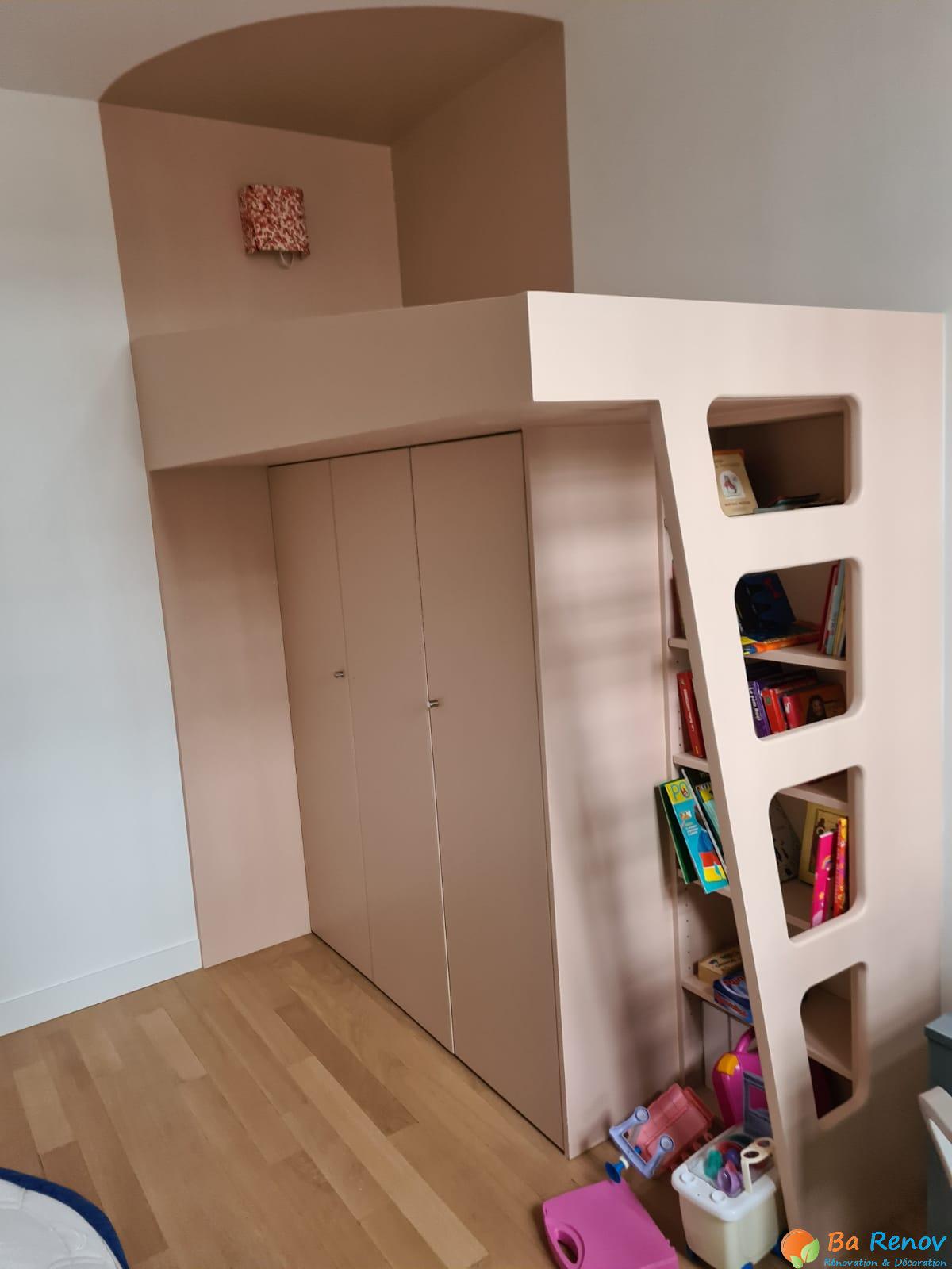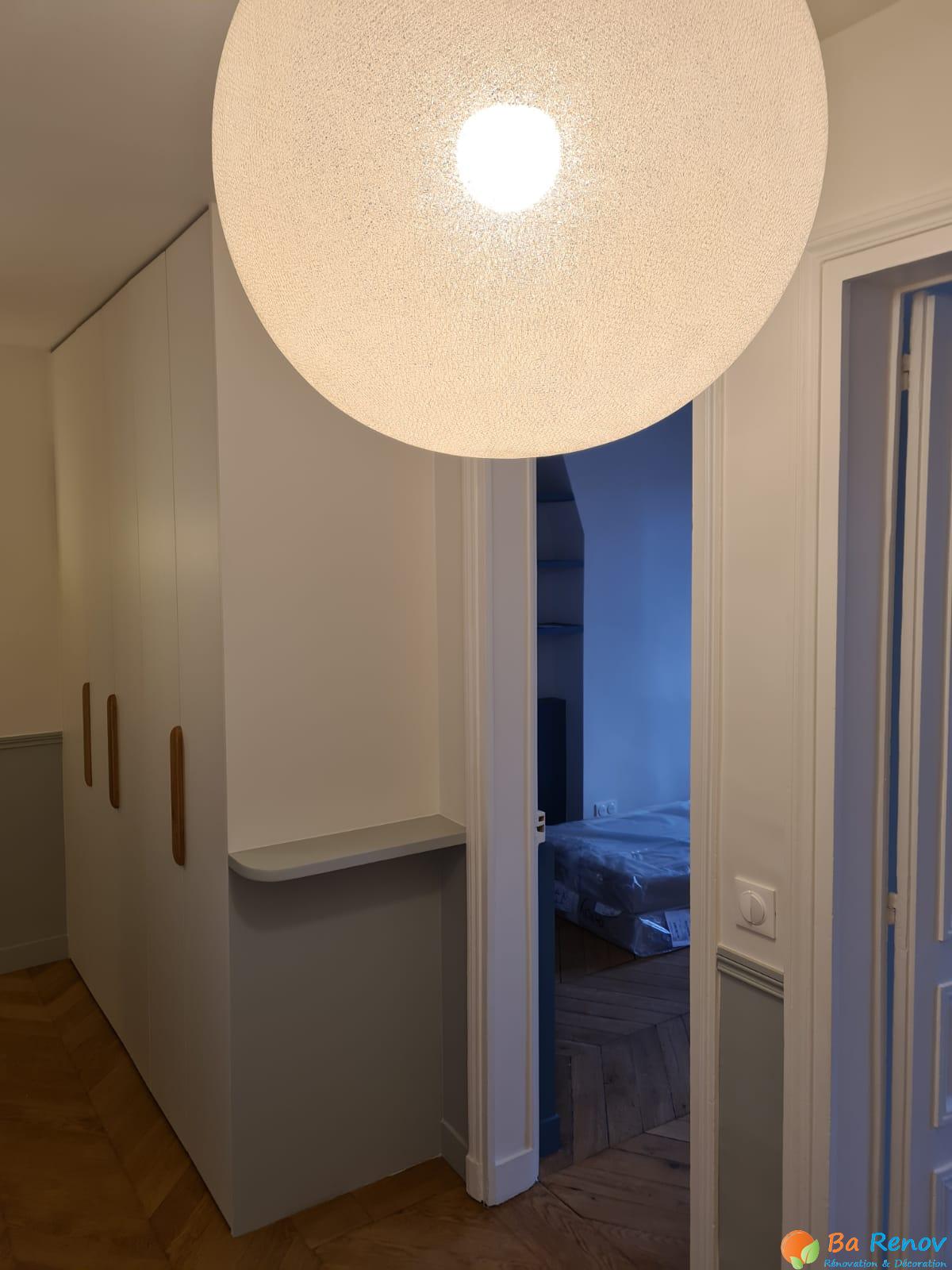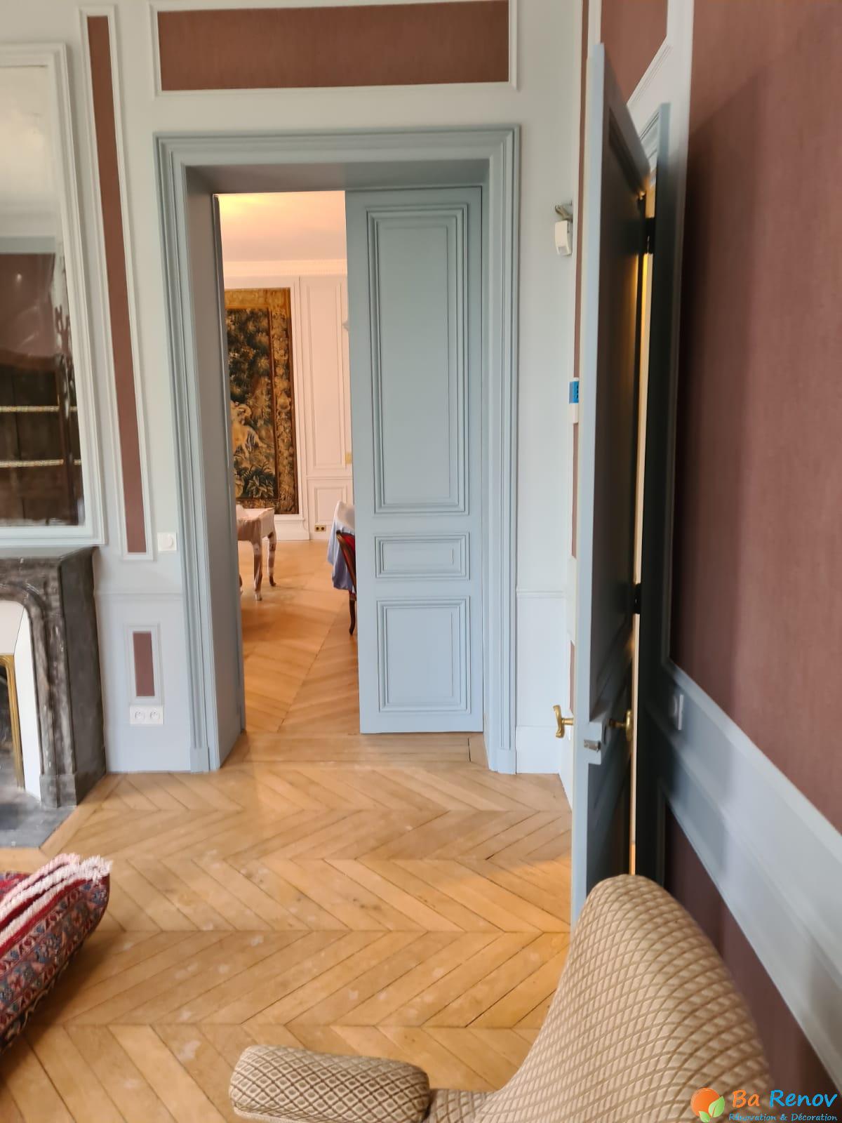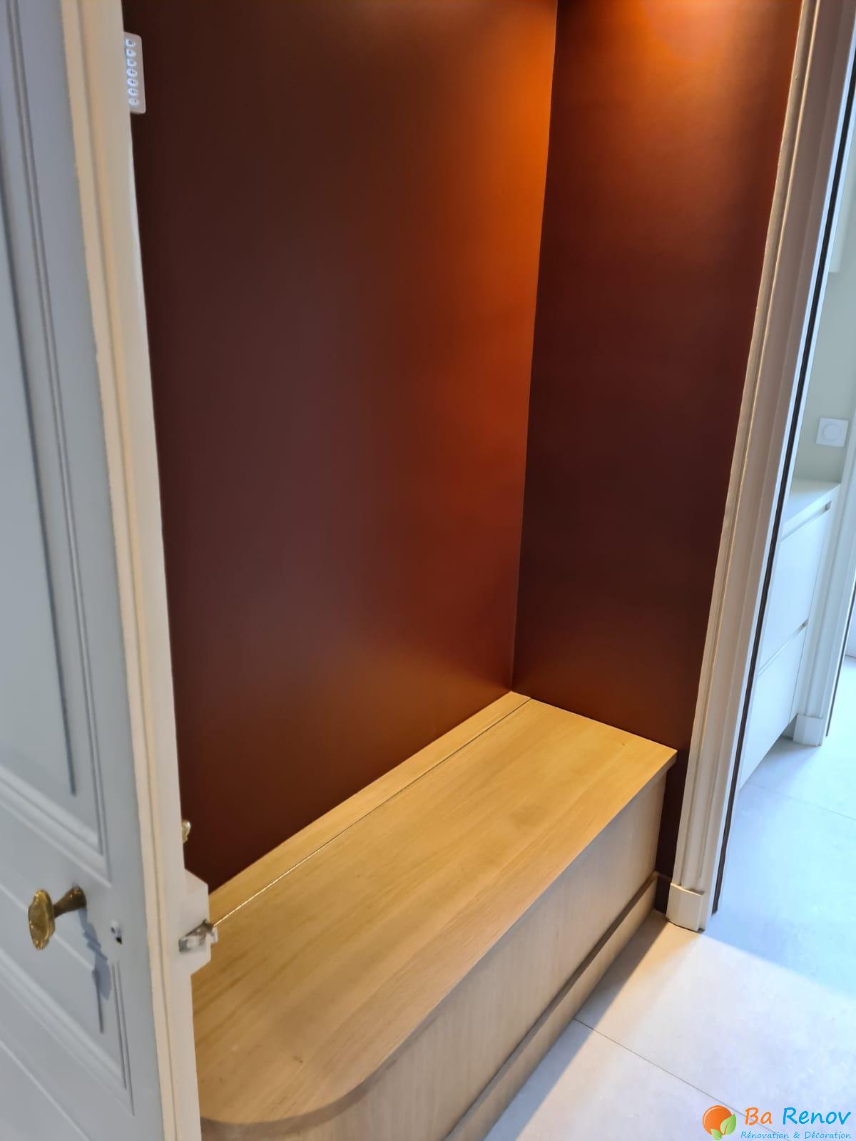Un magnifique ensemble de menuiserie en surélévation vous donne une idée précise sur nos capacités de réalisations. La qualité de pose du carrelage et du parquet sont la marque de notre savoir faire. La finition et les peintures mettent en lumière le soin apporté par nos peintres. Vous constaterez que toute l’électricité est encastrée, ce qui donne toute sa dimension à une décoration appropriée.