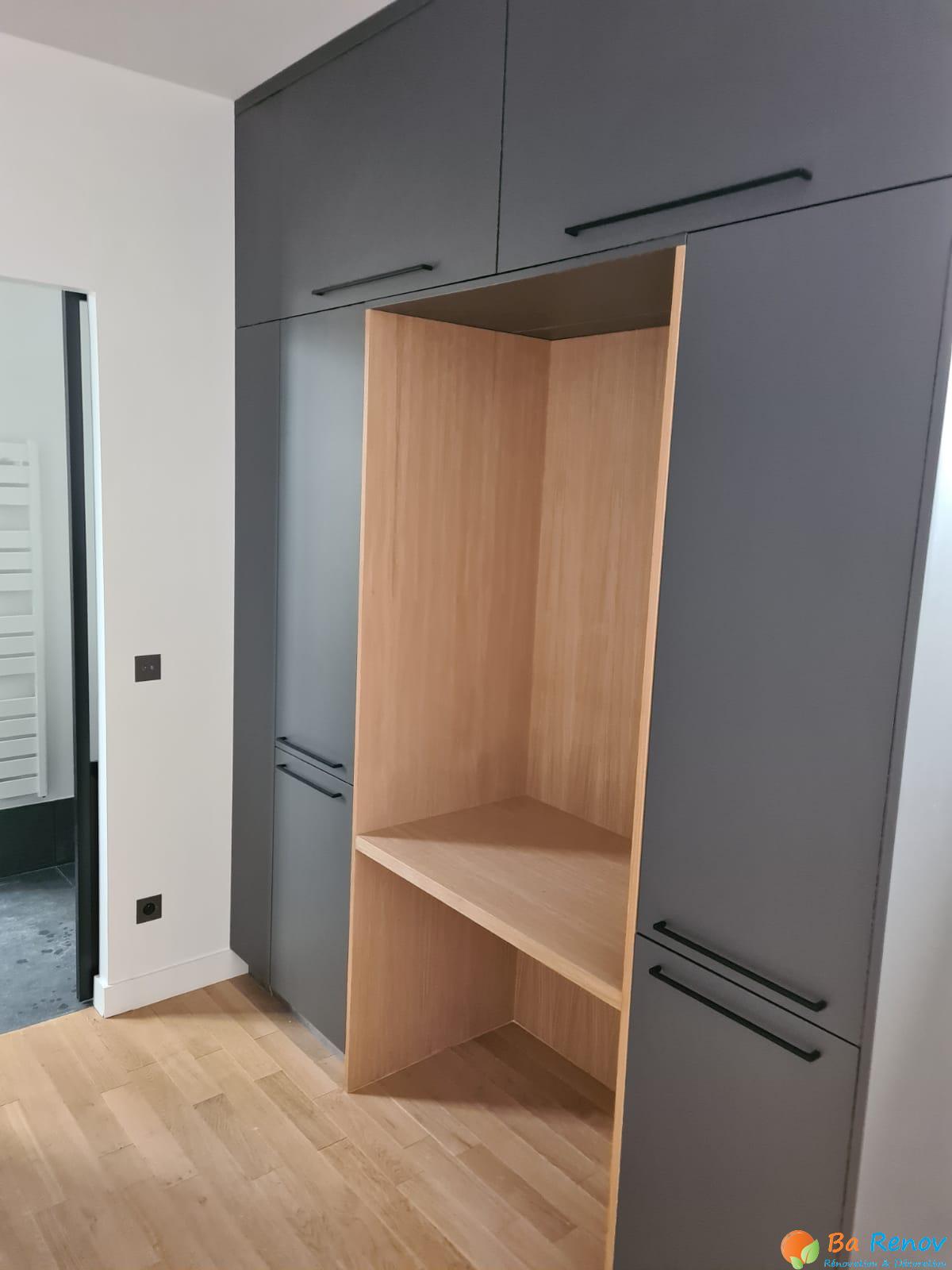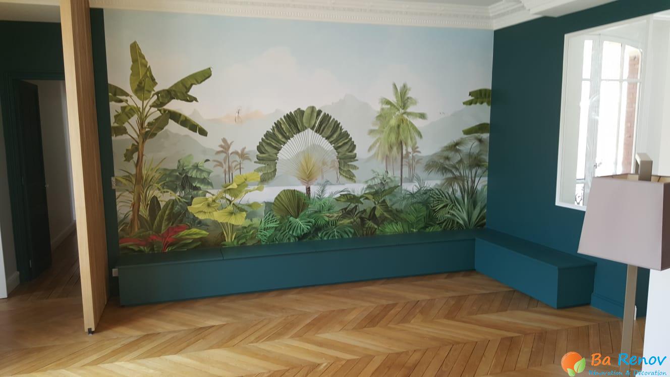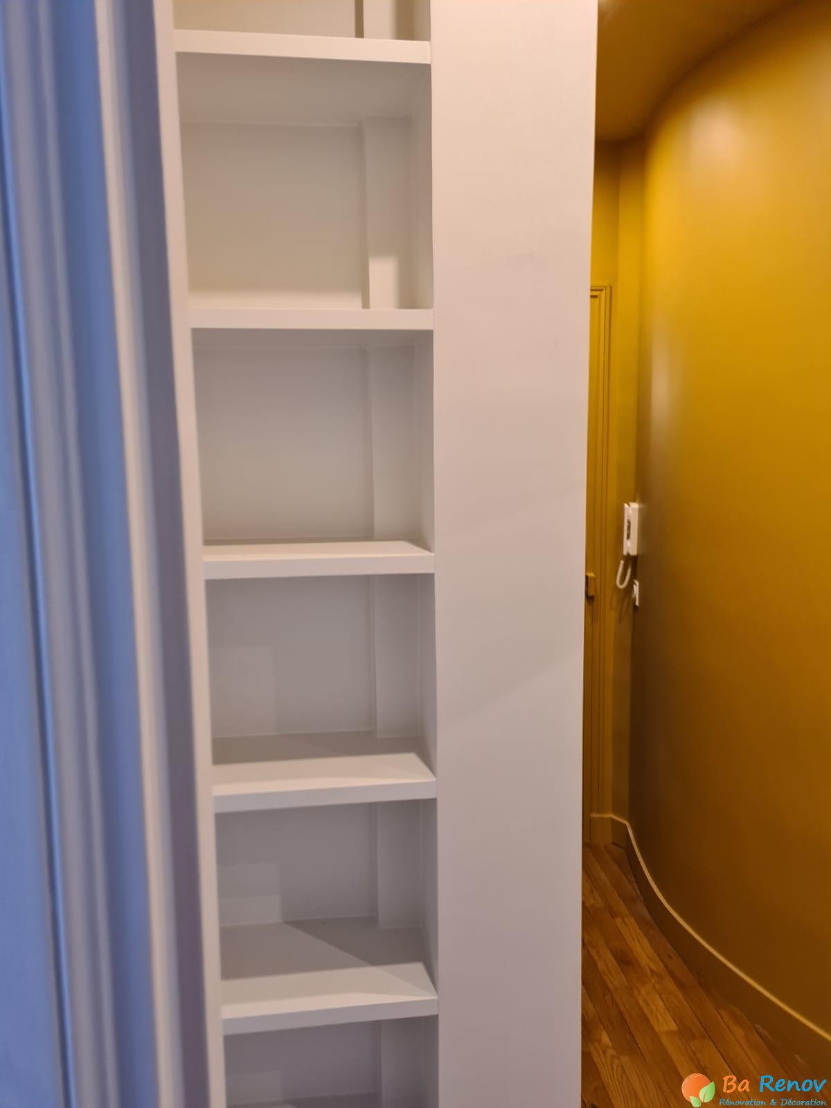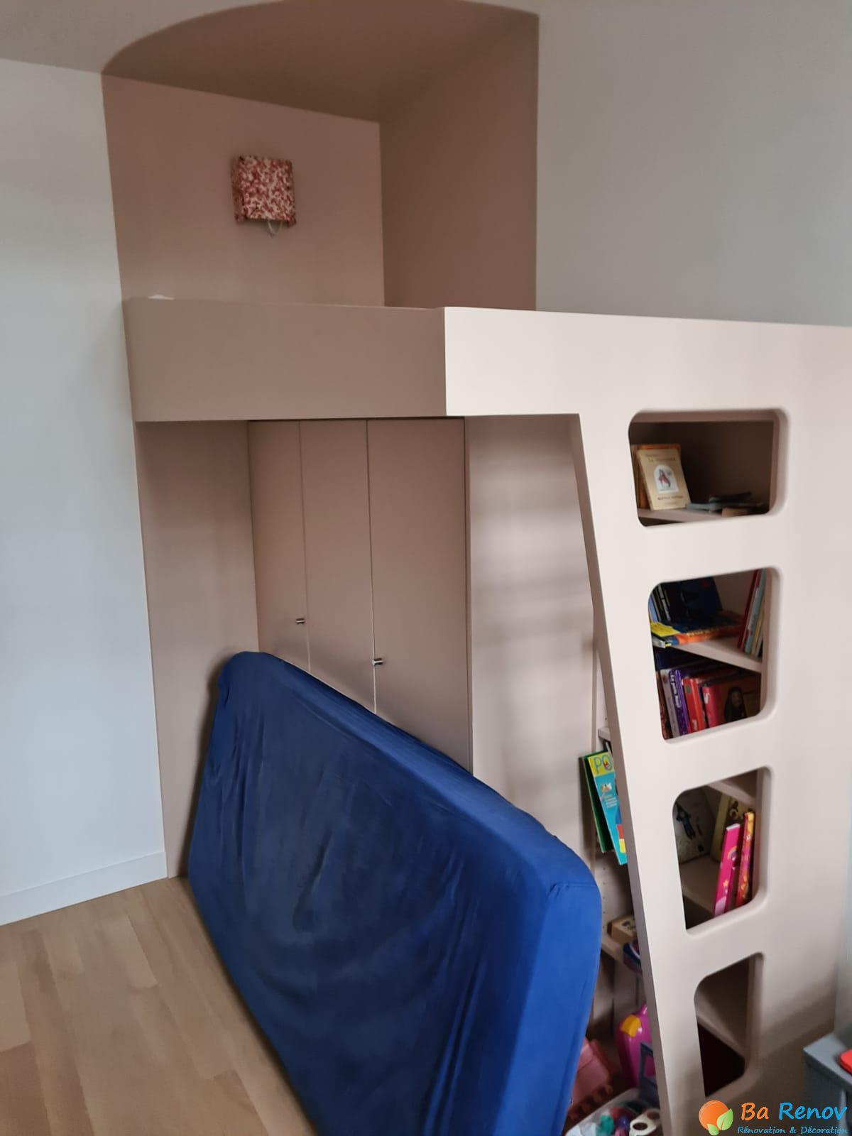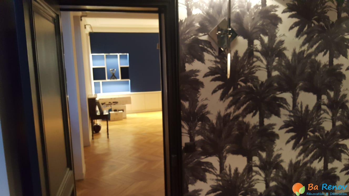 Un magnifique ensemble de menuiserie en surélévation vous donne une idée précise sur nos capacités de réalisations. La qualité de pose du carrelage et du parquet sont la marque de notre savoir faire. La finition et les peintures mettent en lumière le soin apporté par nos peintres. Vous constaterez que toute l’électricité est encastrée, ce qui donne toute sa dimension à une décoration appropriée.