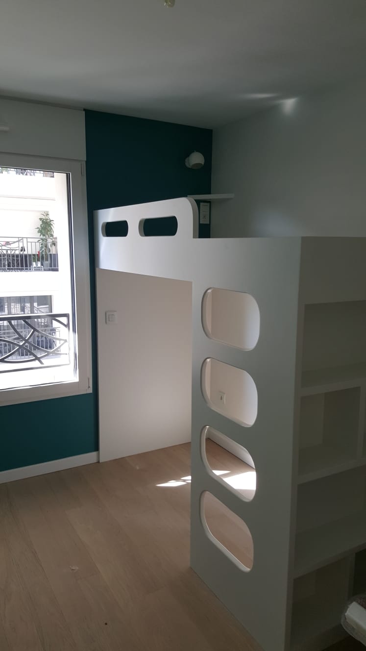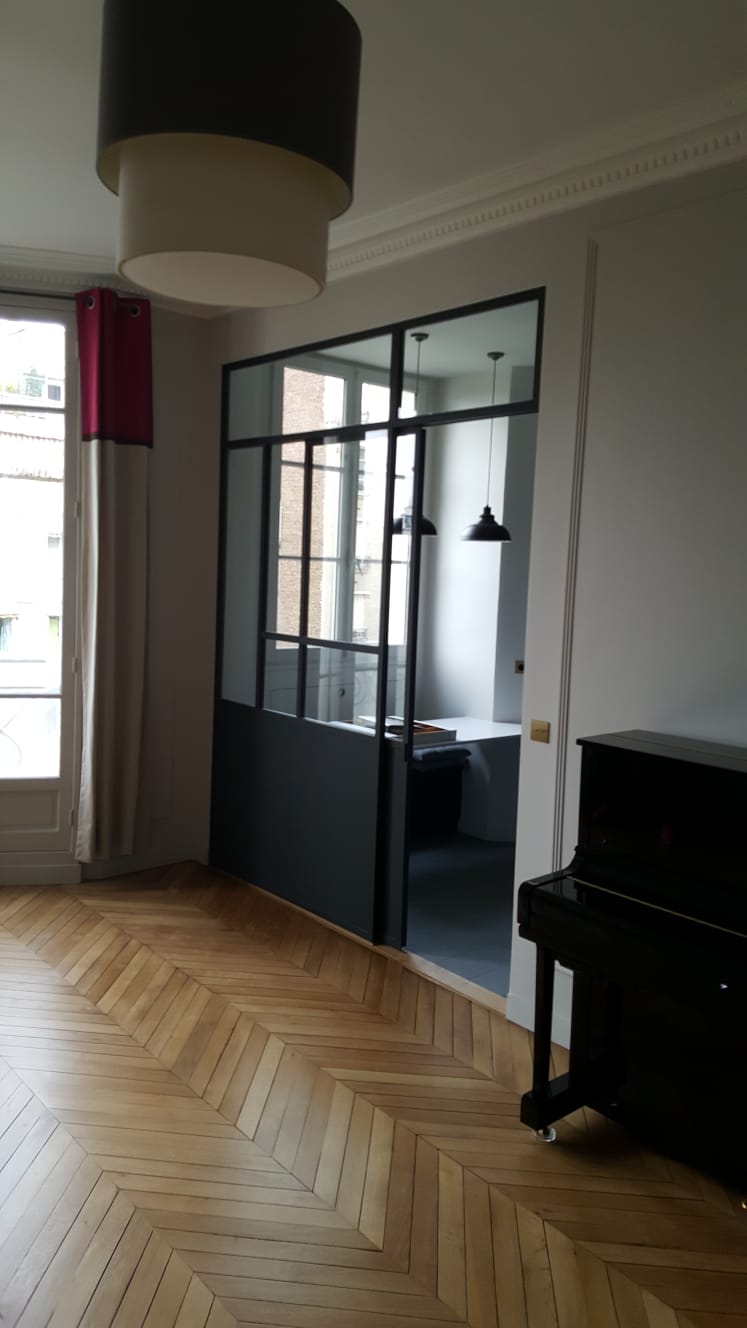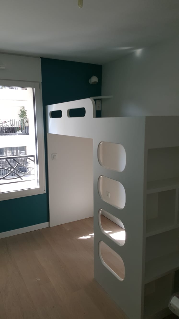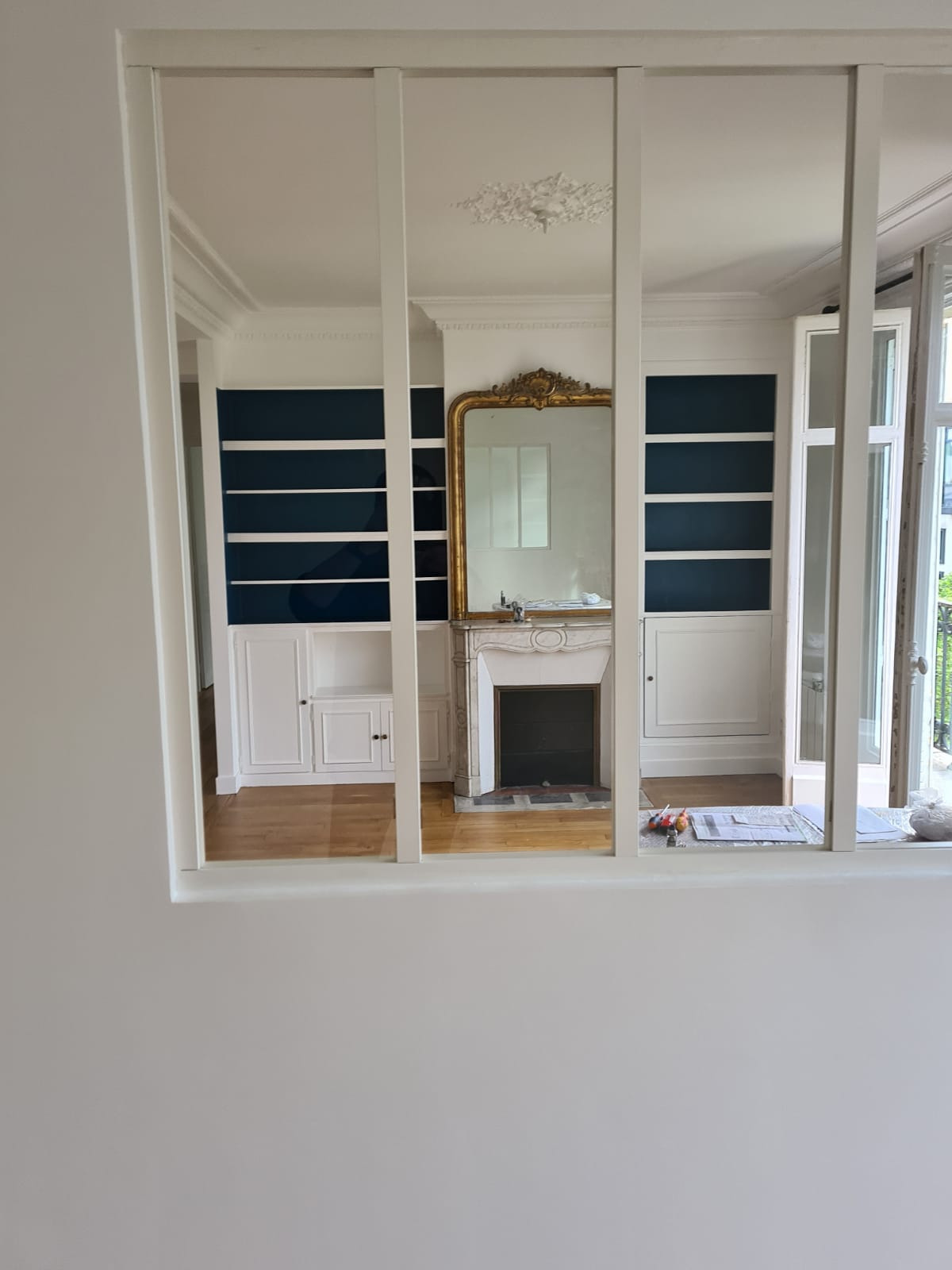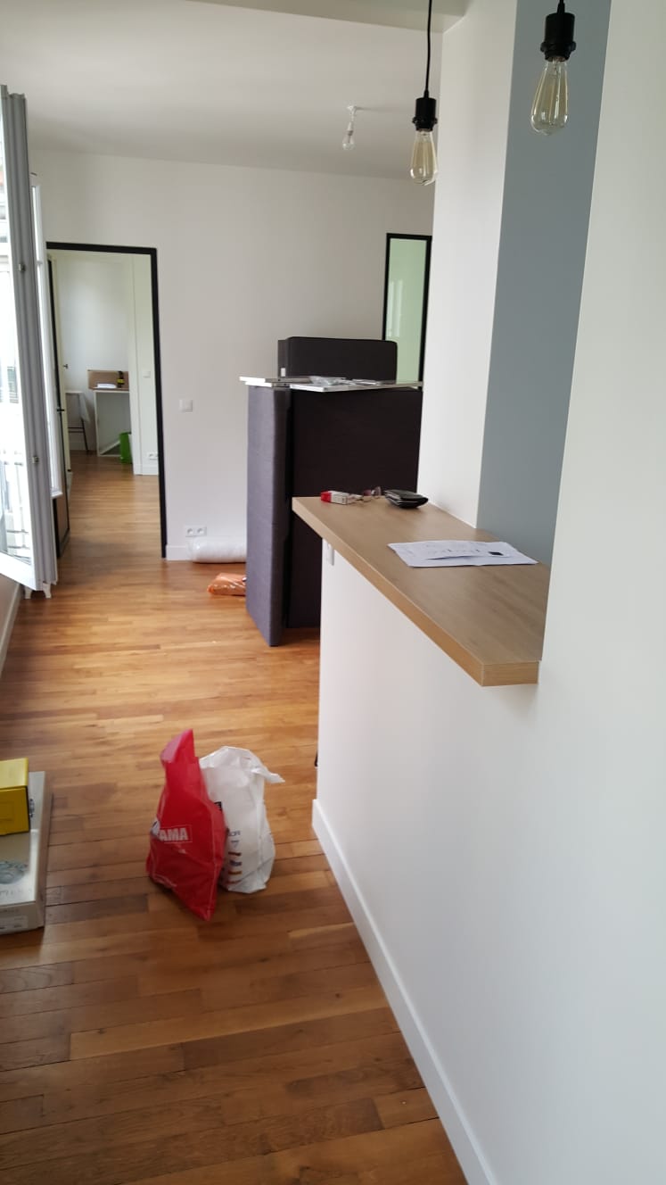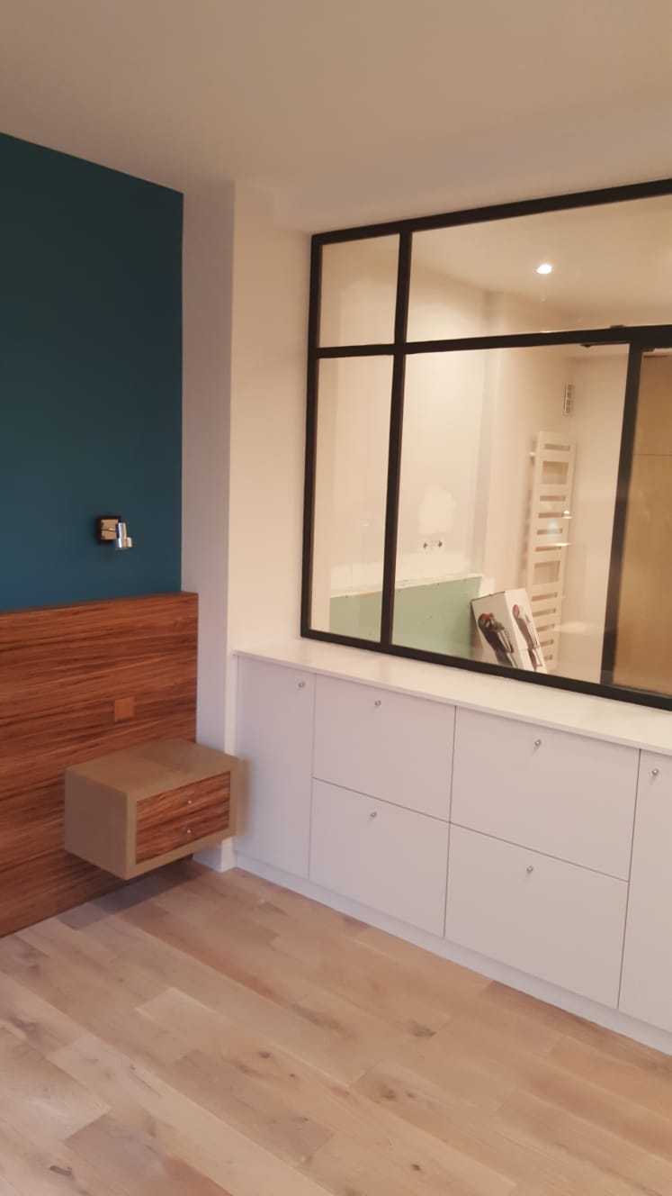 Un magnifique ensemble de menuiserie en surélévation vous donne une idée précise sur nos capacités de réalisations. La qualité de pose du carrelage et du parquet sont la marque de notre savoir faire. La finition et les peintures mettent en lumière le soin apporté par nos peintres. Vous constaterez que toute l’électricité est encastrée, ce qui donne toute sa dimension à une décoration appropriée.