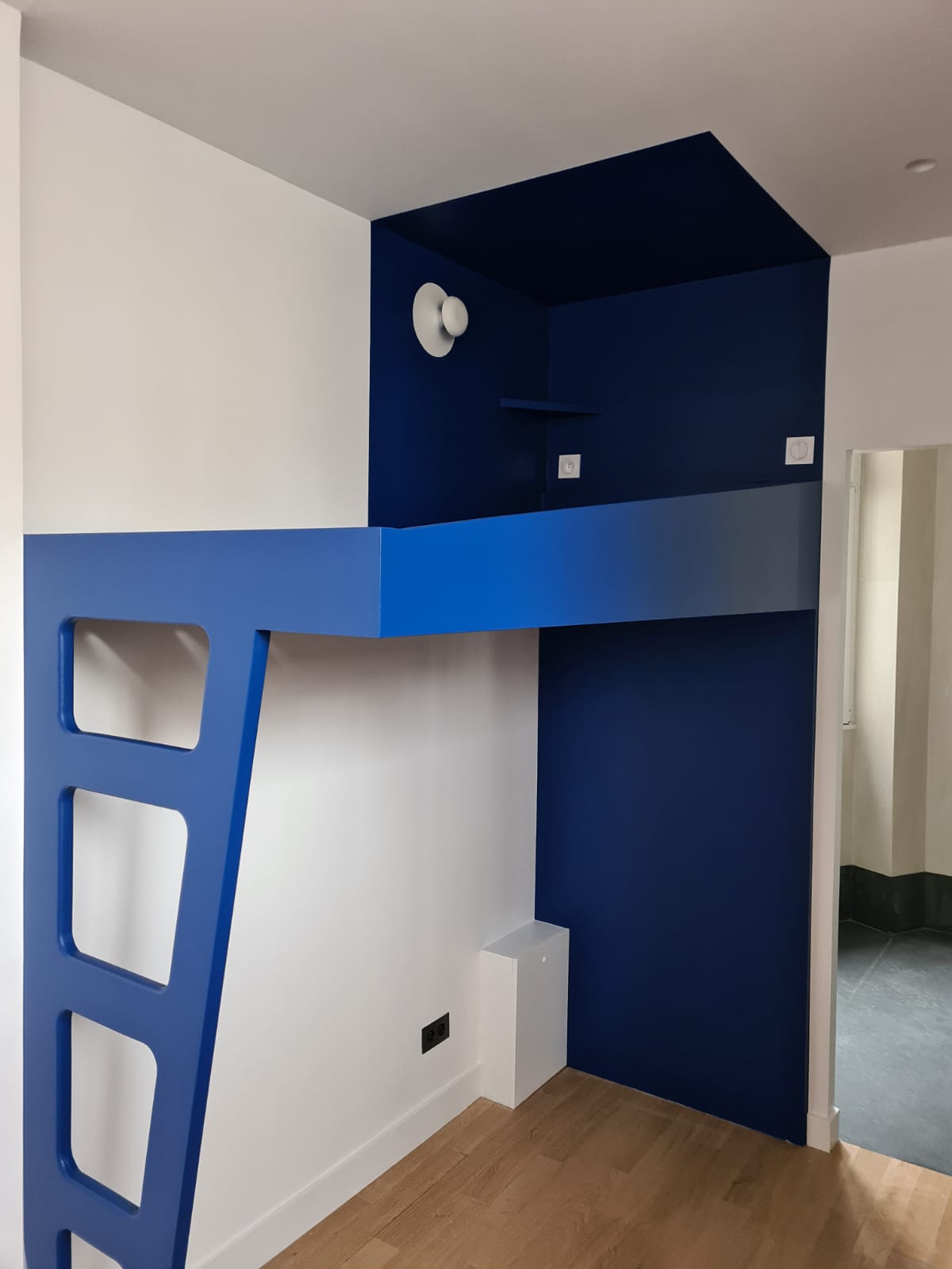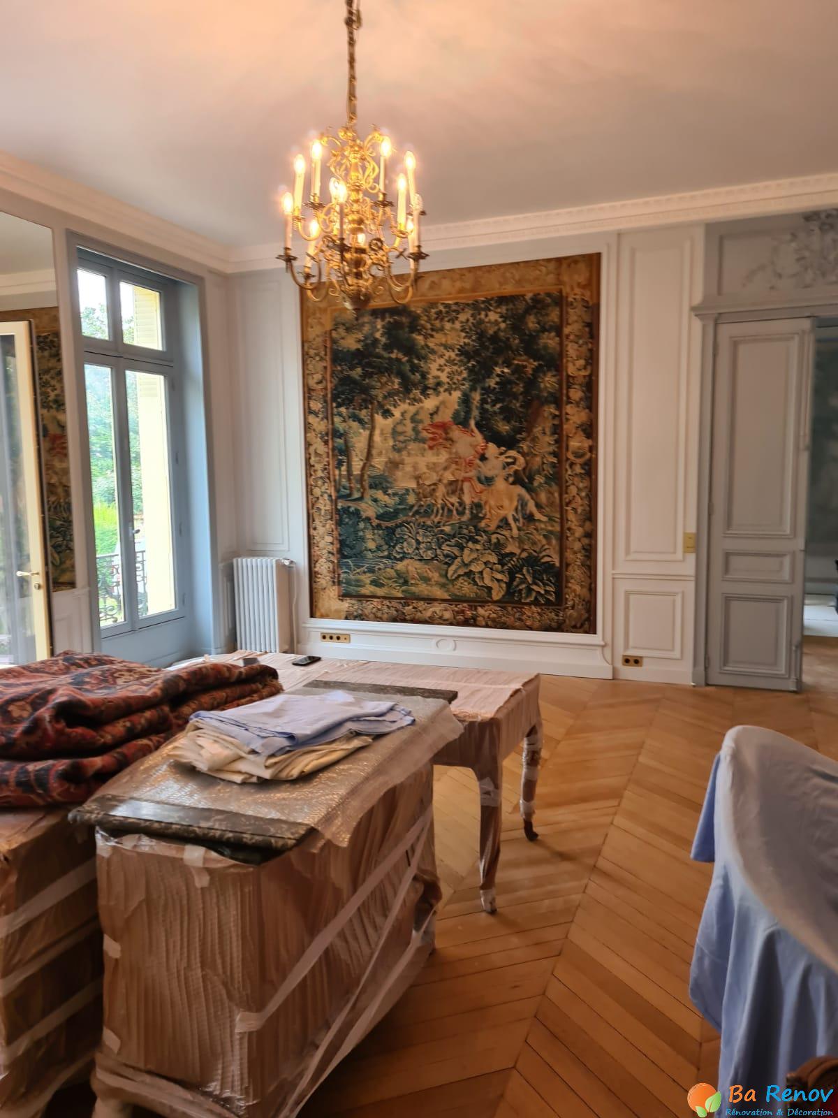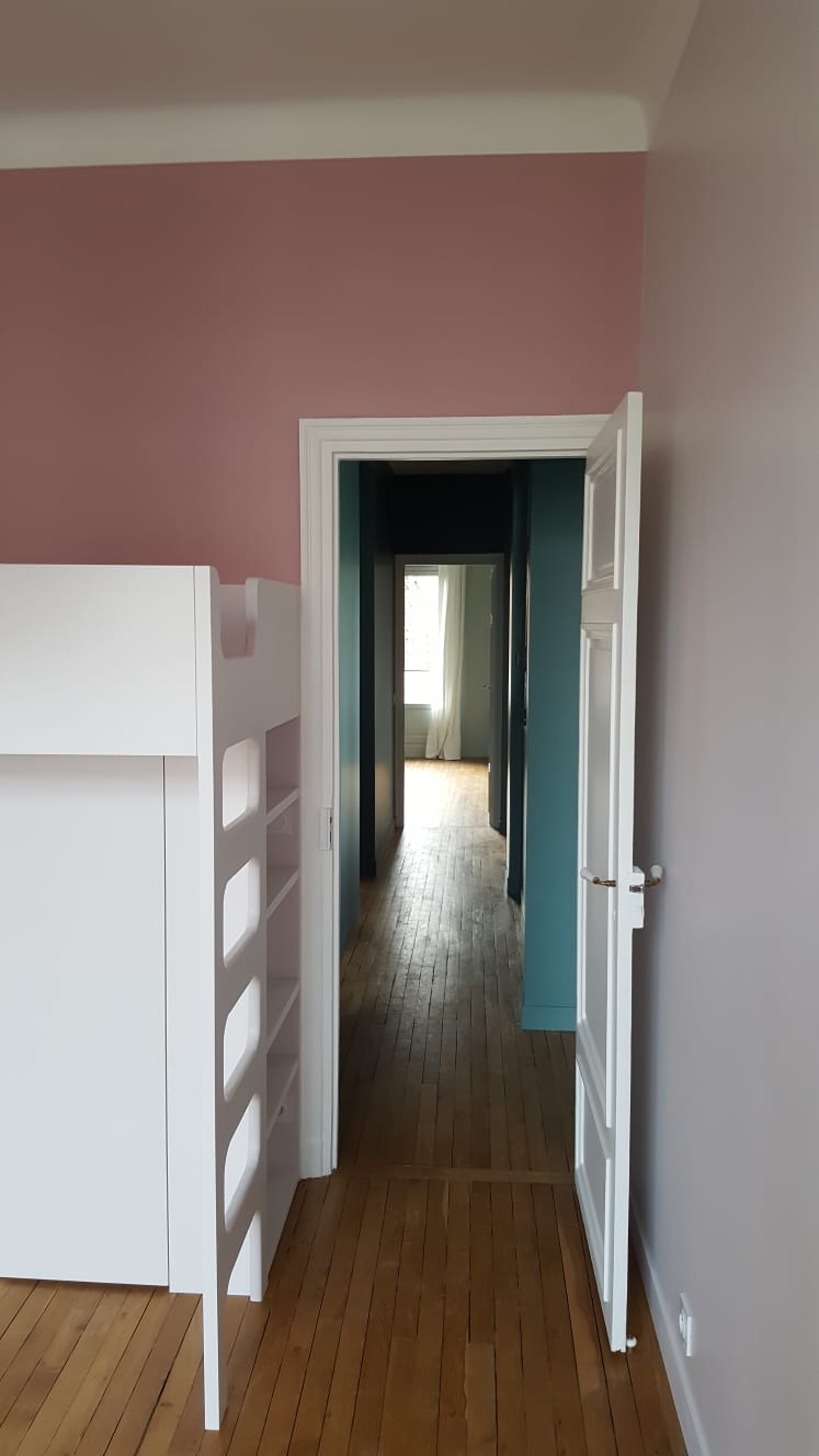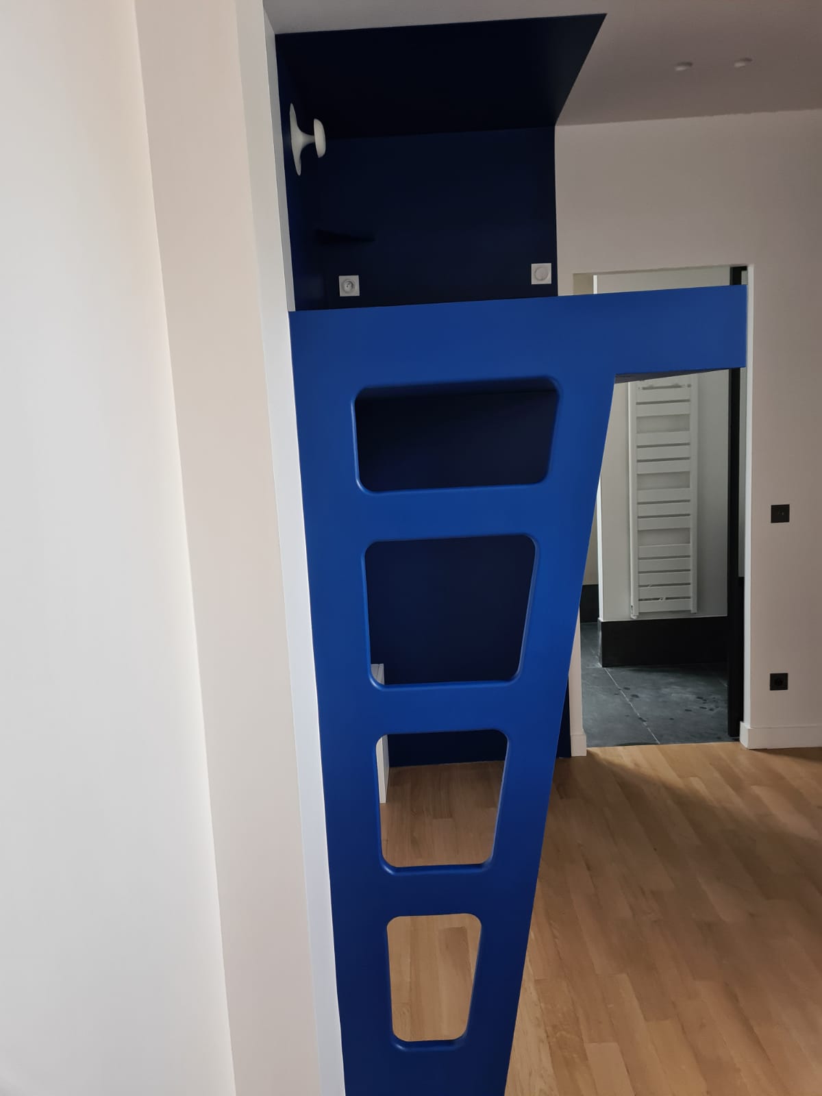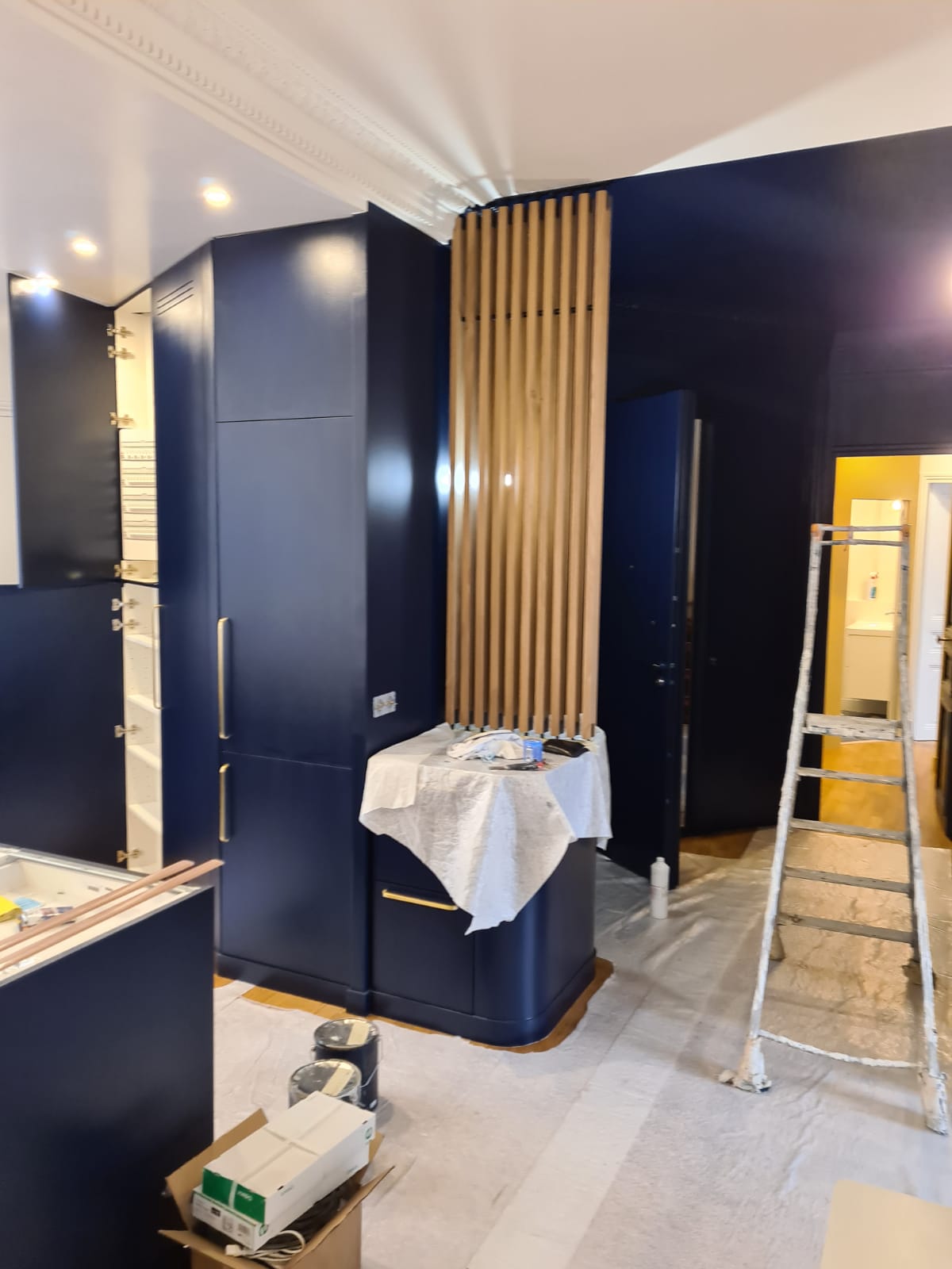Un magnifique ensemble de menuiserie en surélévation vous donne une idée précise sur nos capacités de réalisations. La qualité de pose du carrelage et du parquet sont la marque de notre savoir faire. La finition et les peintures mettent en lumière le soin apporté par nos peintres. Vous constaterez que toute l’électricité est encastrée, ce qui donne toute sa dimension à une décoration appropriée.