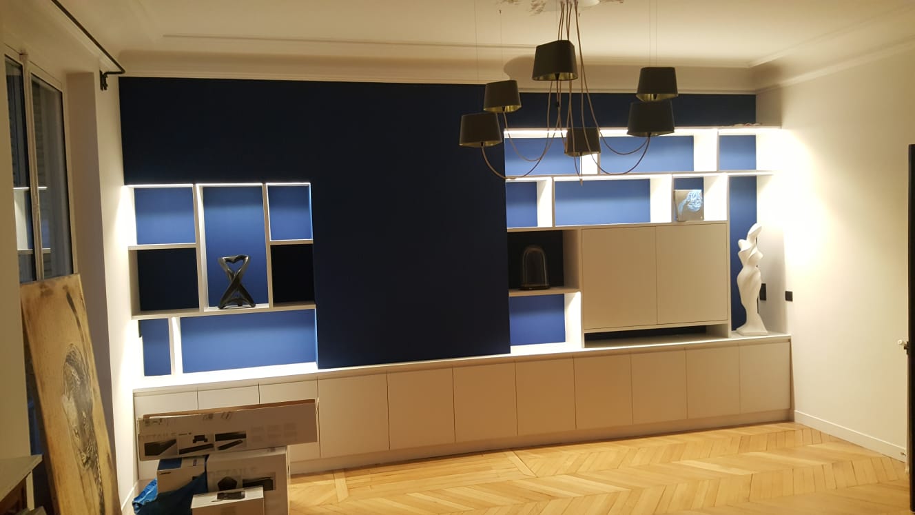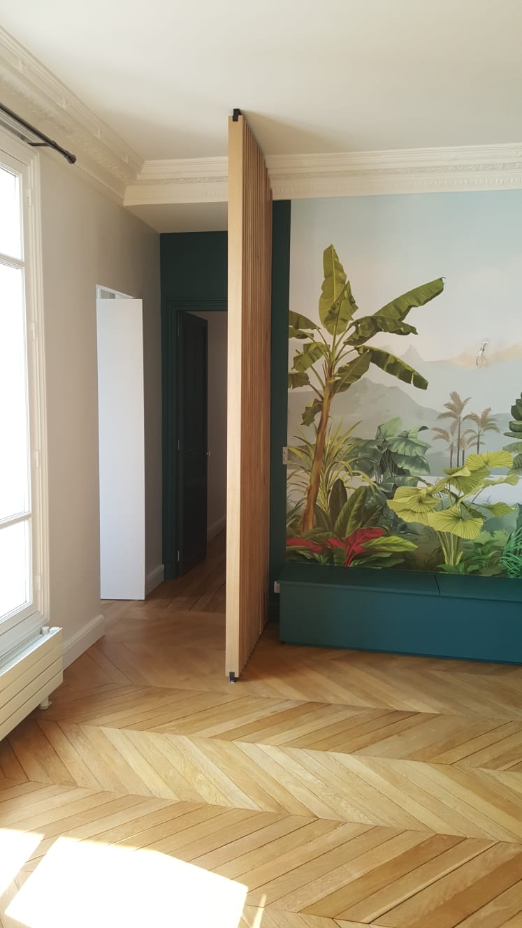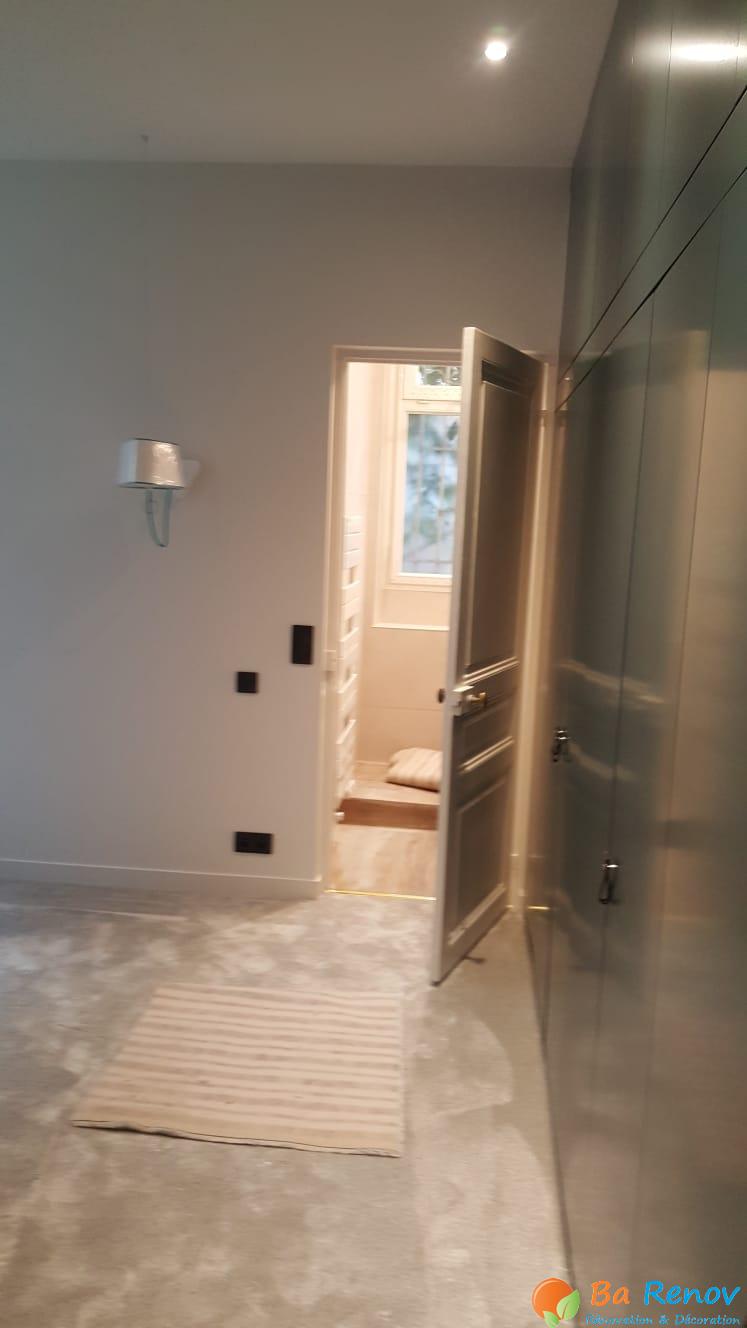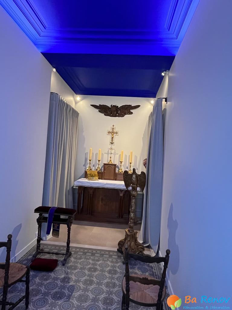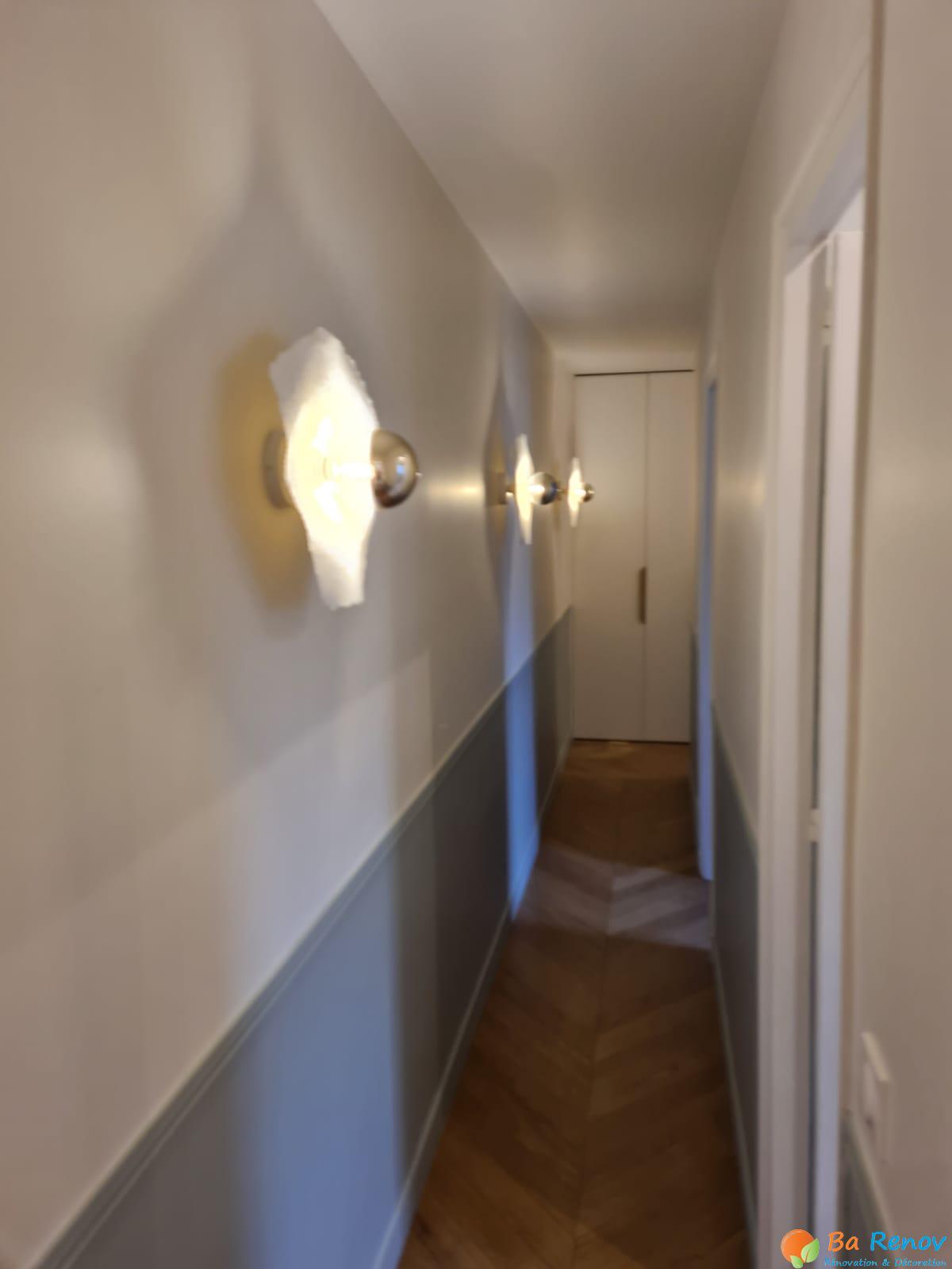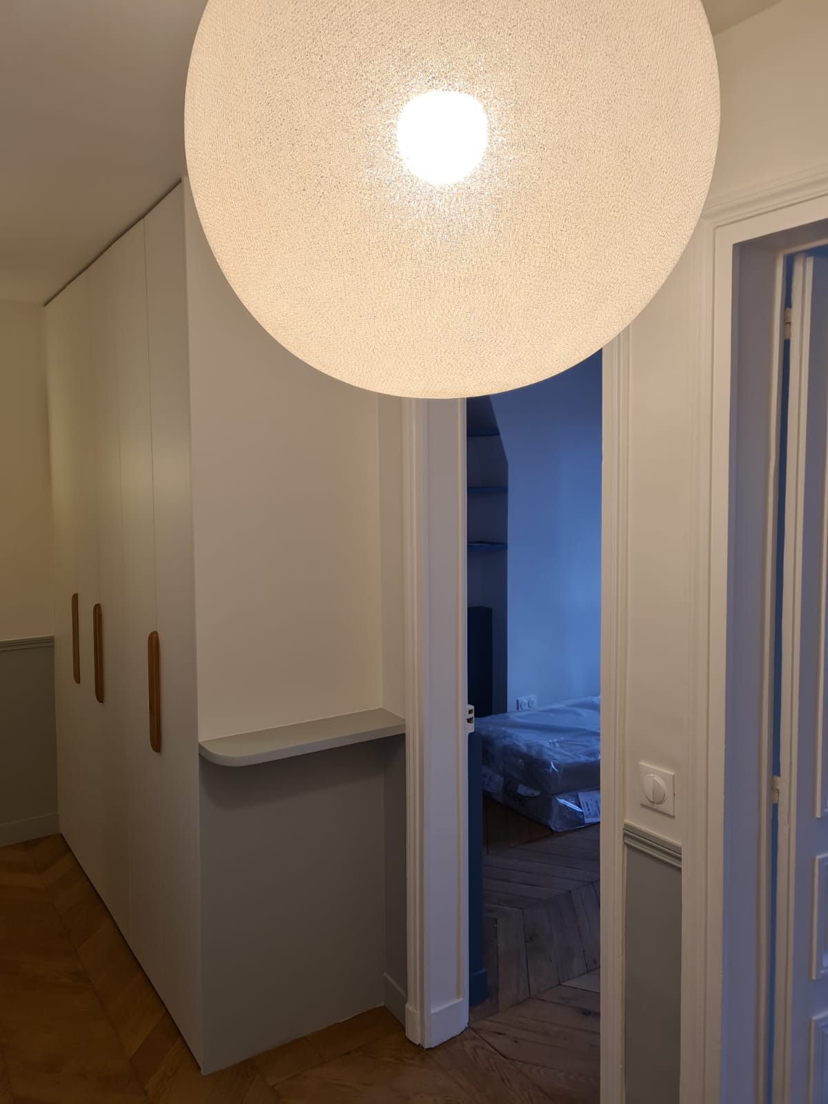 Un magnifique ensemble de menuiserie en surélévation vous donne une idée précise sur nos capacités de réalisations. La qualité de pose du carrelage et du parquet sont la marque de notre savoir faire. La finition et les peintures mettent en lumière le soin apporté par nos peintres. Vous constaterez que toute l’électricité est encastrée, ce qui donne toute sa dimension à une décoration appropriée.