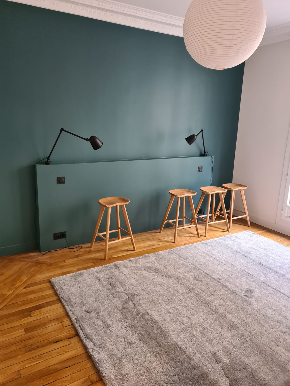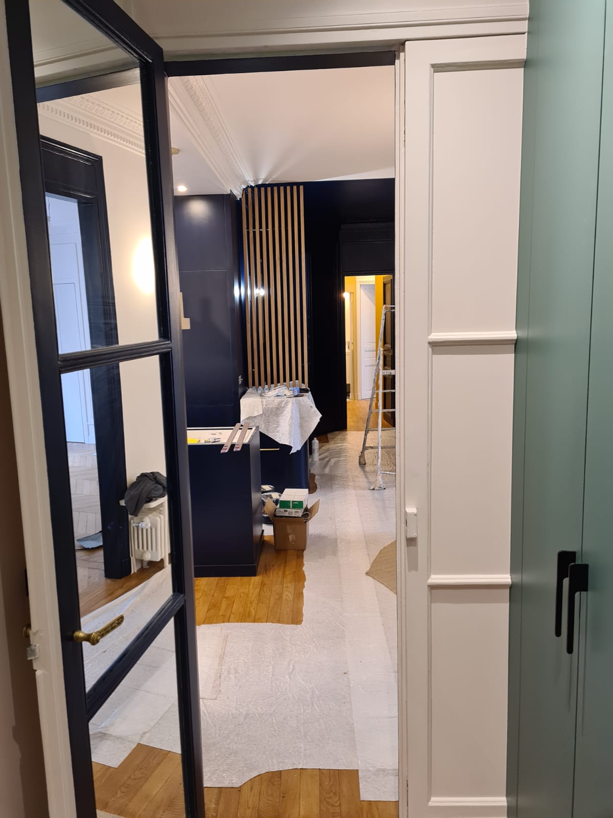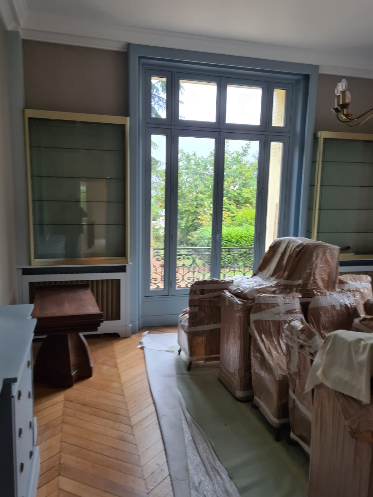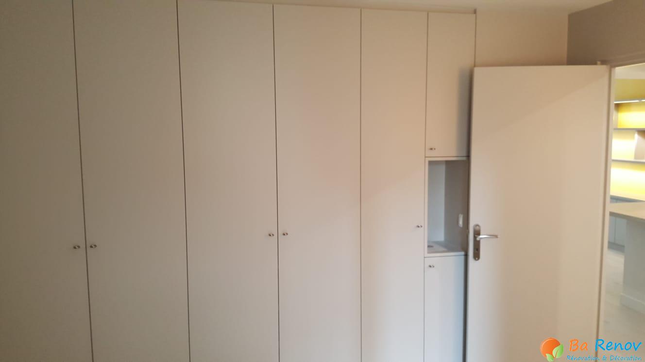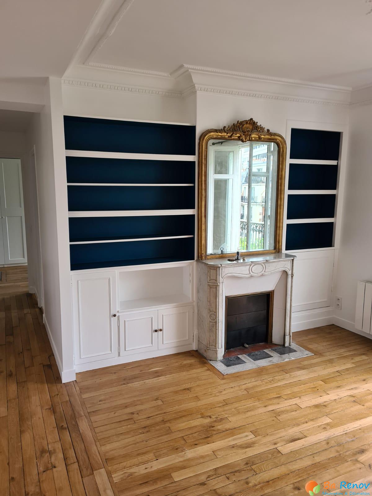 Un magnifique ensemble de menuiserie en surélévation vous donne une idée précise sur nos capacités de réalisations. La qualité de pose du carrelage et du parquet sont la marque de notre savoir faire. La finition et les peintures mettent en lumière le soin apporté par nos peintres. Vous constaterez que toute l’électricité est encastrée, ce qui donne toute sa dimension à une décoration appropriée.