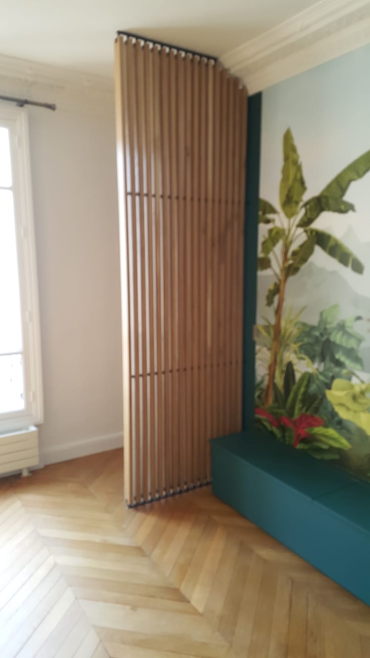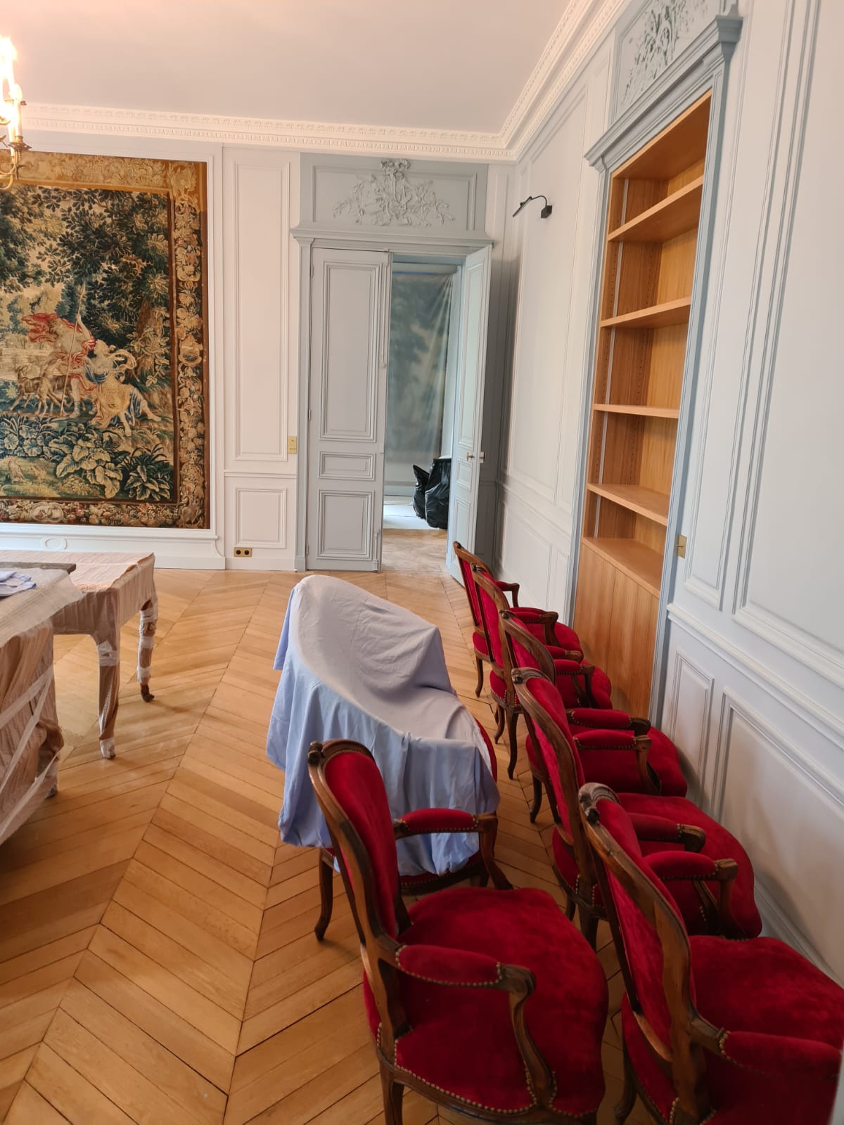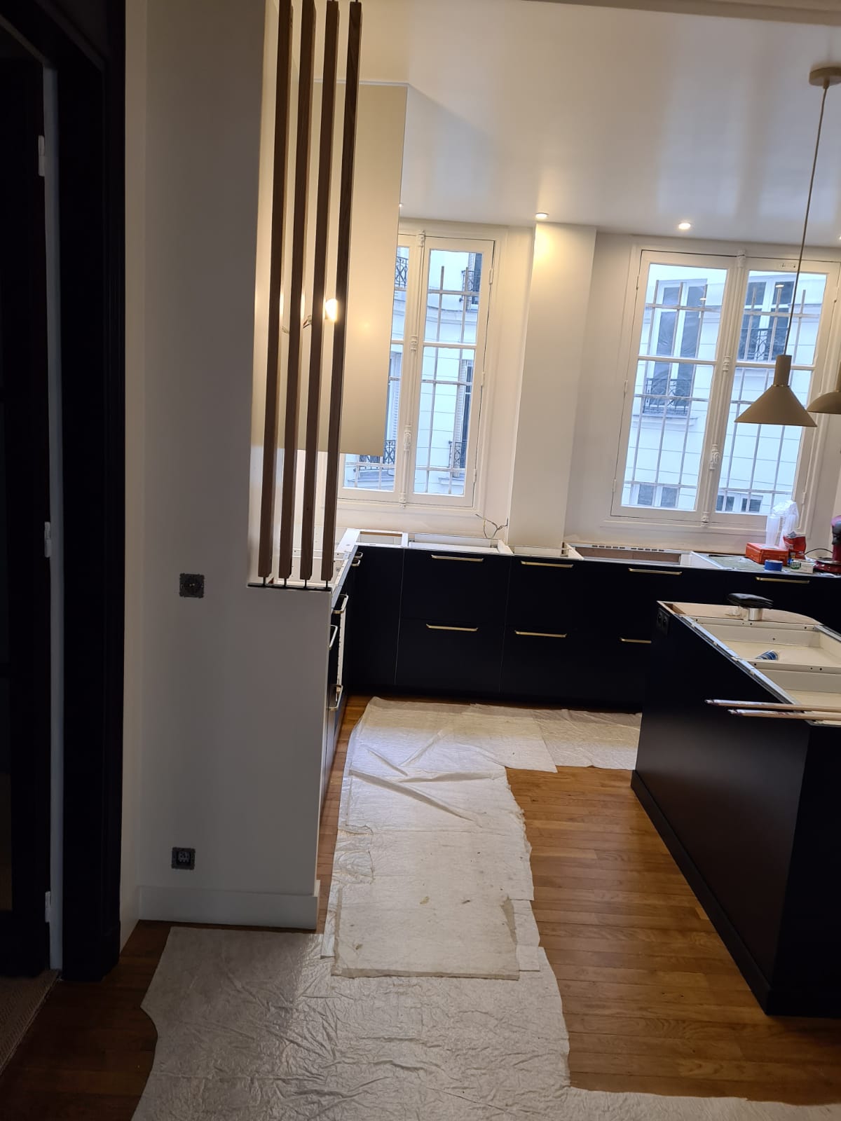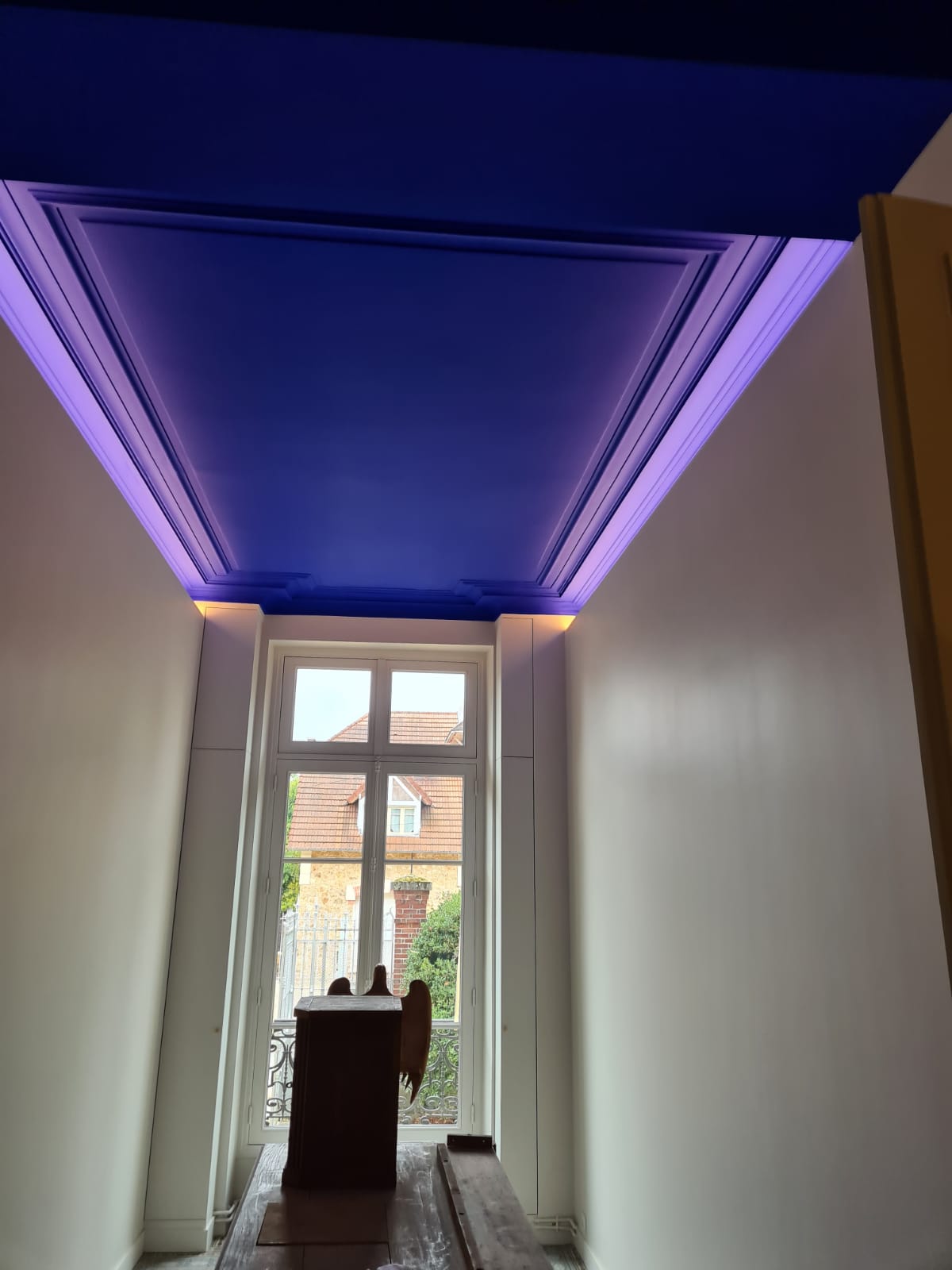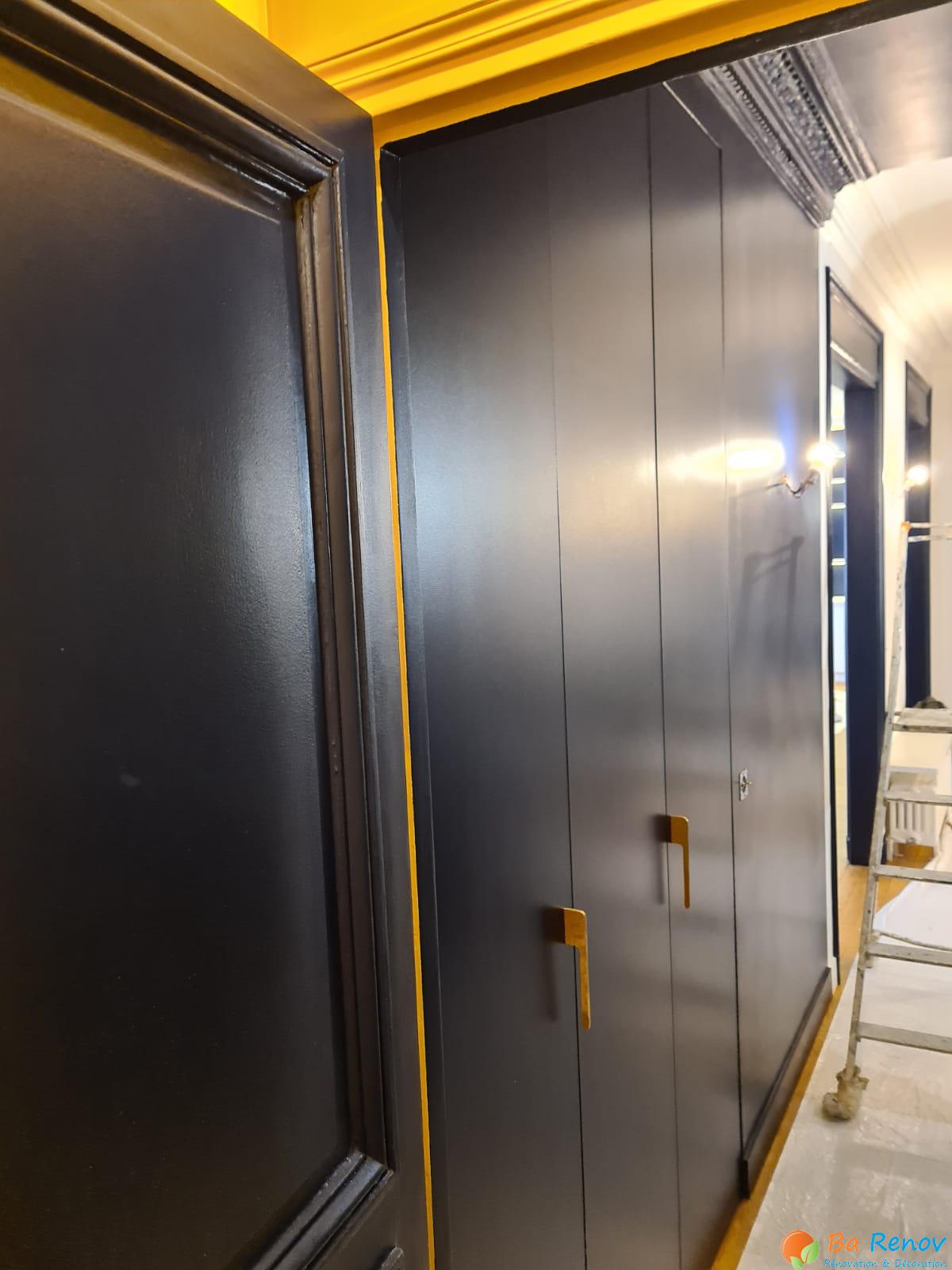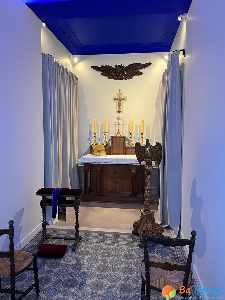 Un magnifique ensemble de menuiserie en surélévation vous donne une idée précise sur nos capacités de réalisations. La qualité de pose du carrelage et du parquet sont la marque de notre savoir faire. La finition et les peintures mettent en lumière le soin apporté par nos peintres. Vous constaterez que toute l’électricité est encastrée, ce qui donne toute sa dimension à une décoration appropriée.