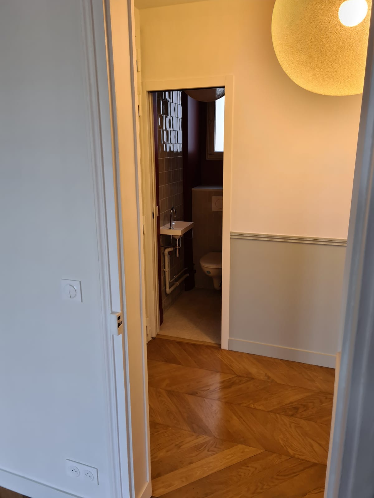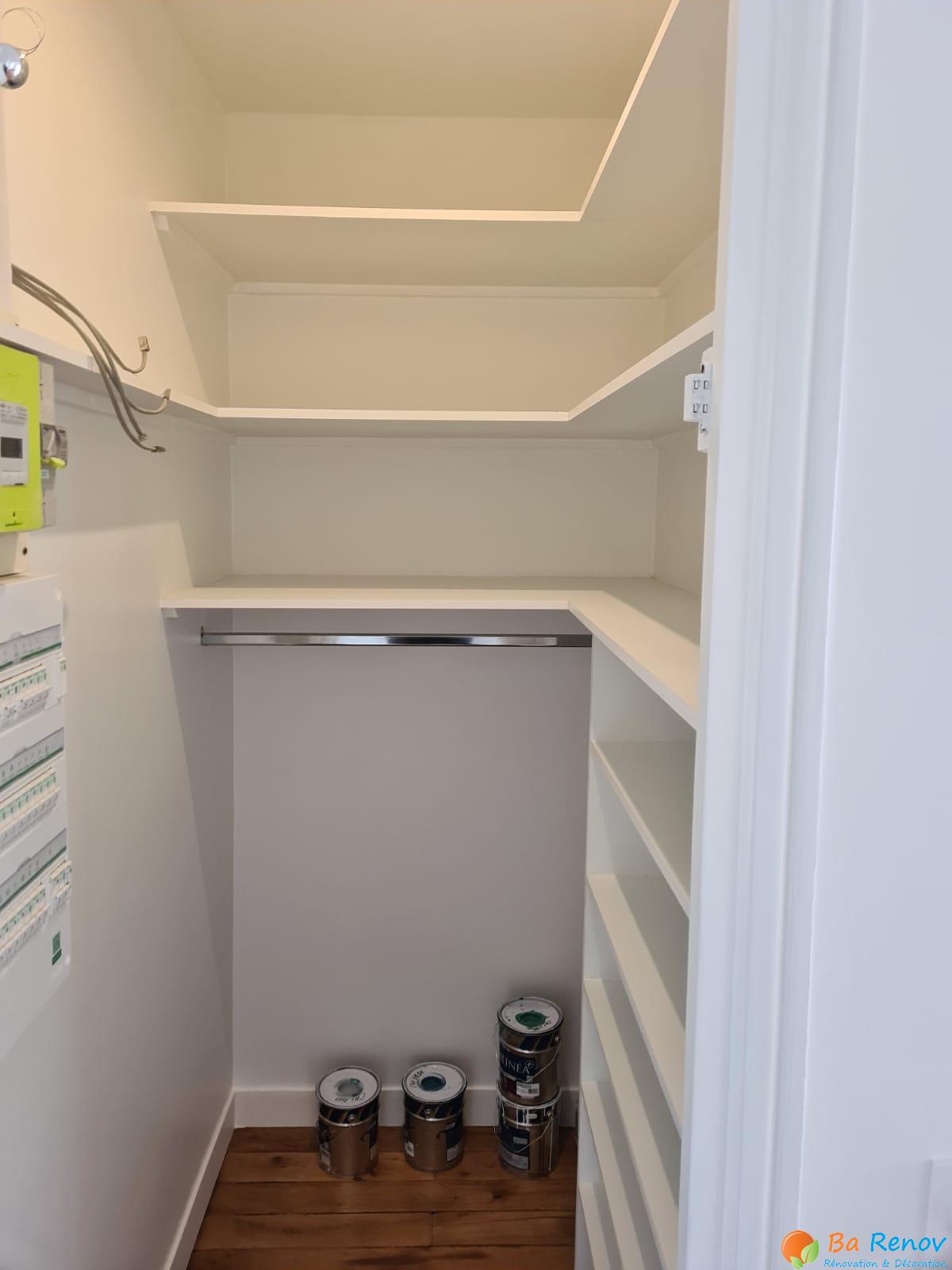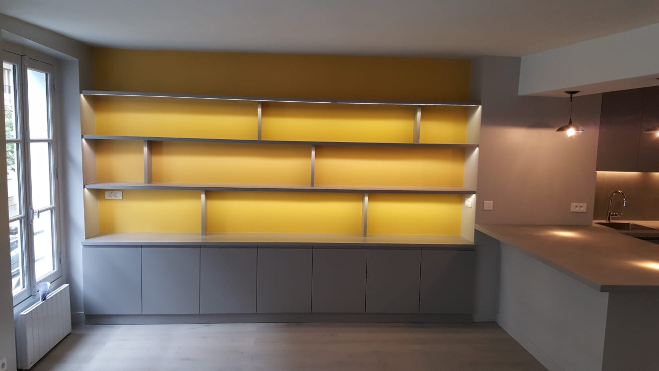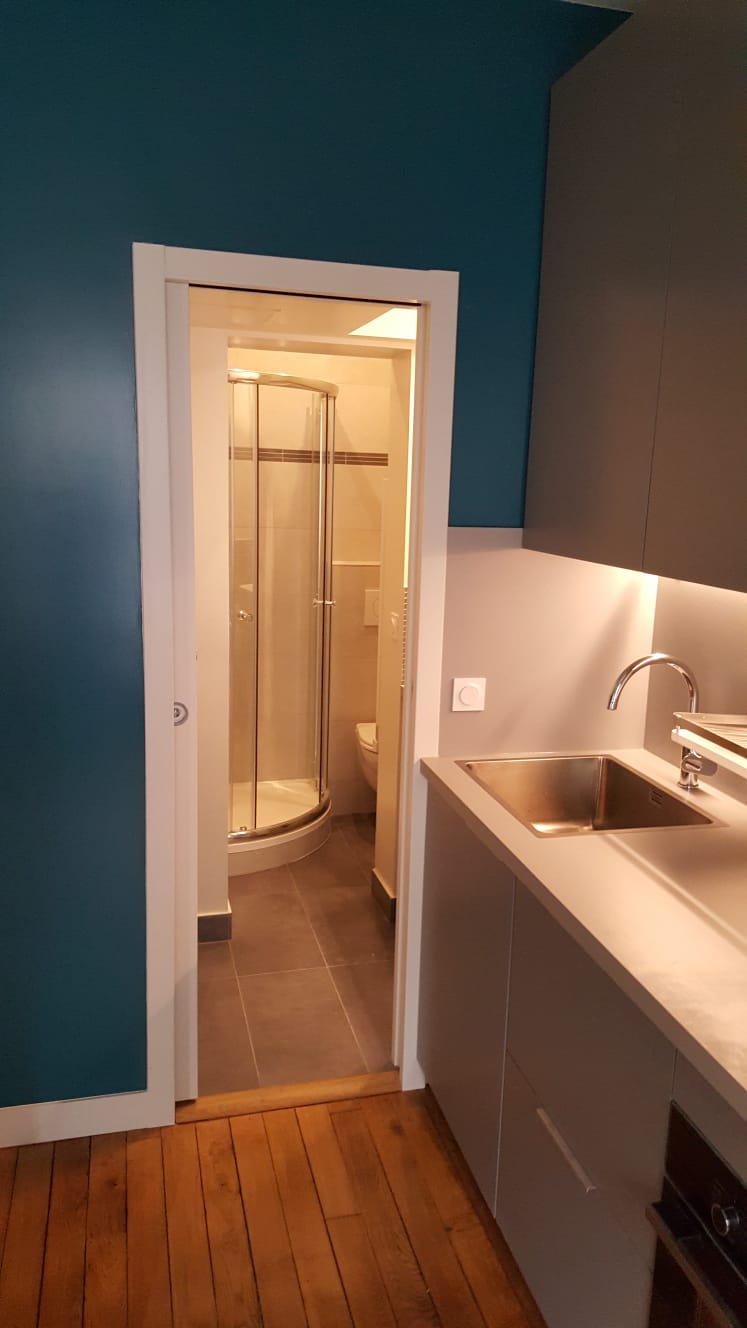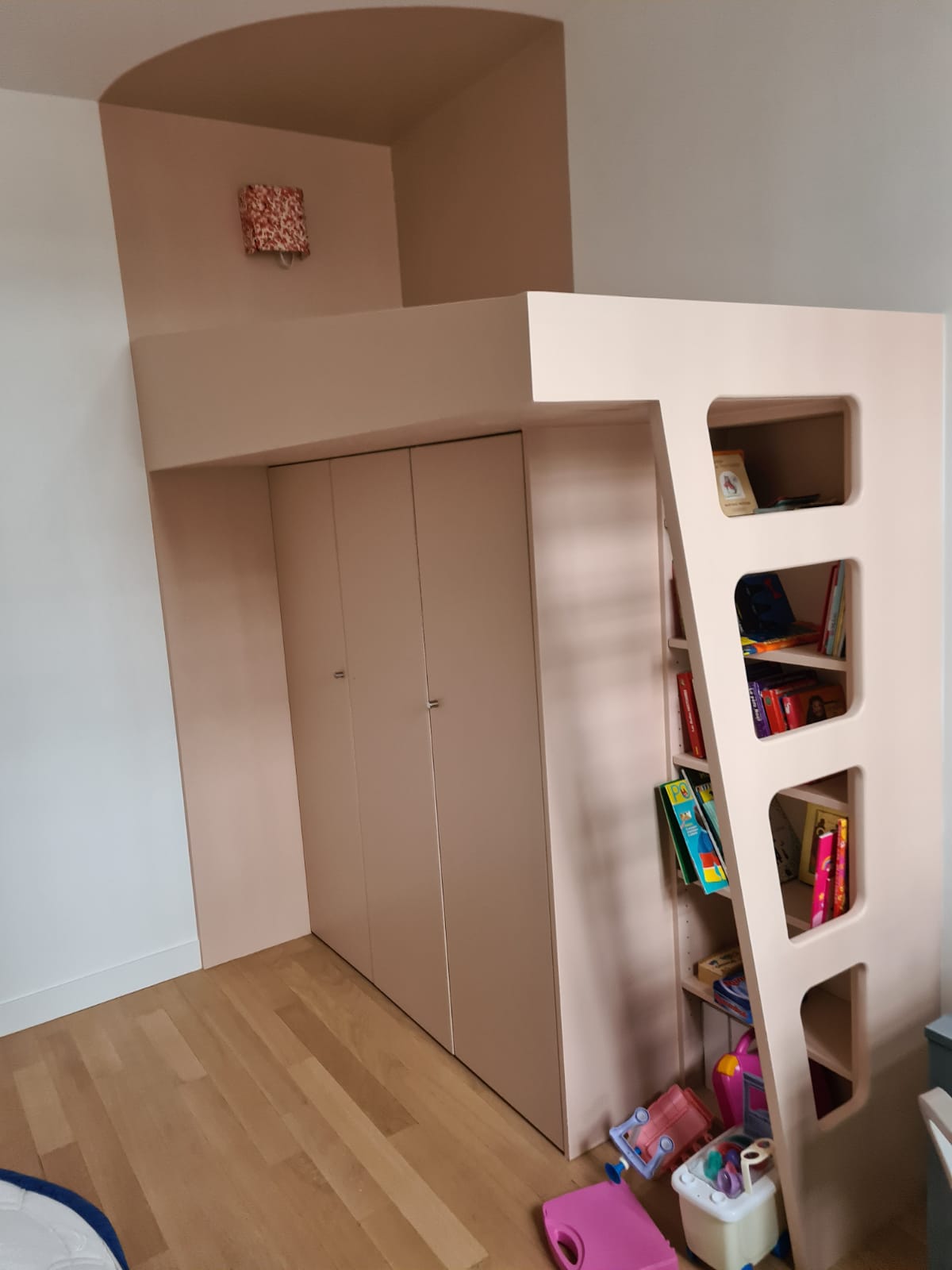 Un magnifique ensemble de menuiserie en surélévation vous donne une idée précise sur nos capacités de réalisations. La qualité de pose du carrelage et du parquet sont la marque de notre savoir faire. La finition et les peintures mettent en lumière le soin apporté par nos peintres. Vous constaterez que toute l’électricité est encastrée, ce qui donne toute sa dimension à une décoration appropriée.